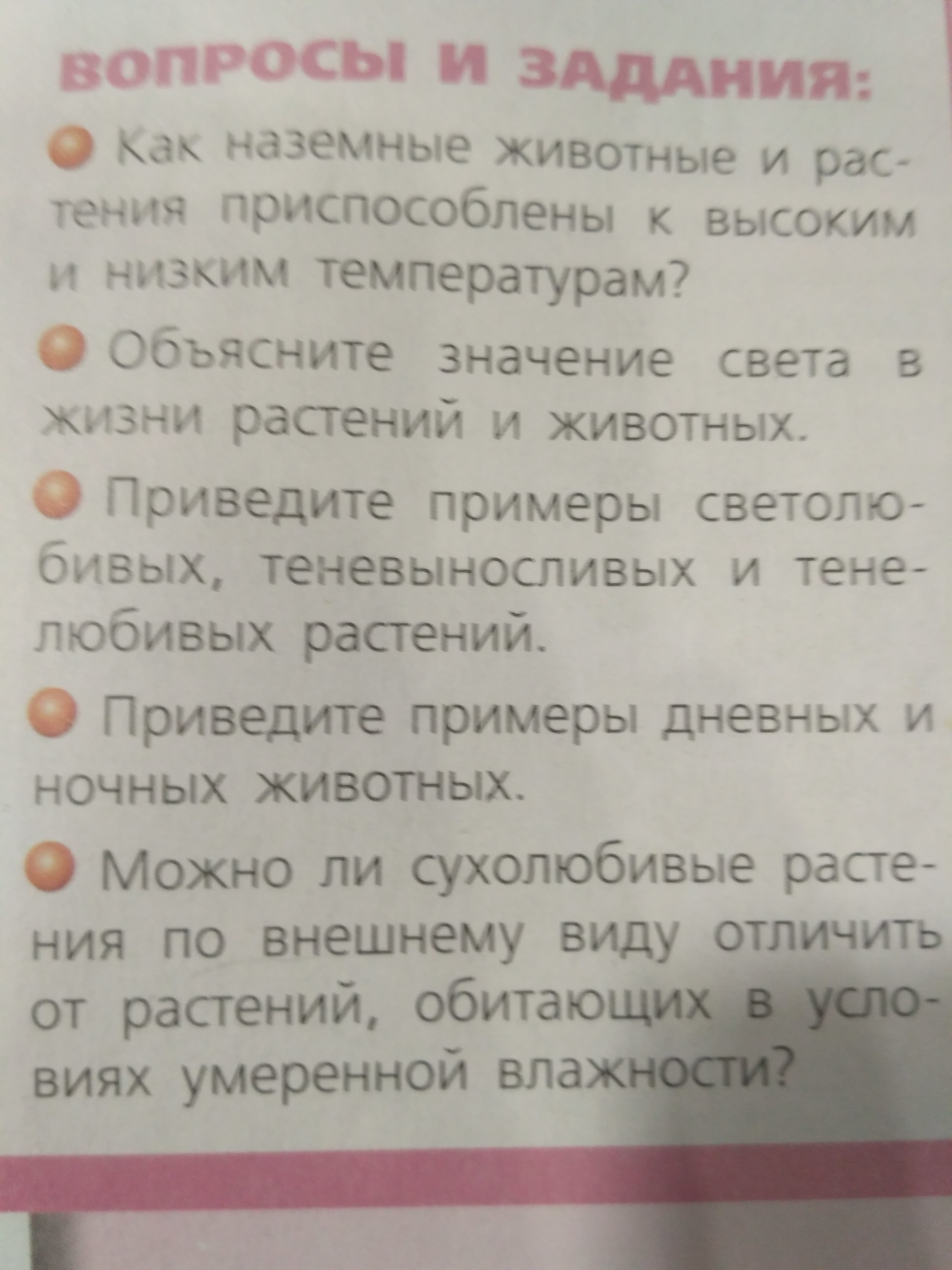 5)Да.У сухолюбивых будут видоизменённые листья (например у кактуса колючки),это нужно что бы удерживать влагу . может быть корневая система ,которая будет опускаться на 200 метров под землю в поисках воды или корневая система будет распространяться по периметру ,что бы если пойдет дождь получить ,как можно больше влаги.У влаголюбивых большие листья для транспирации.