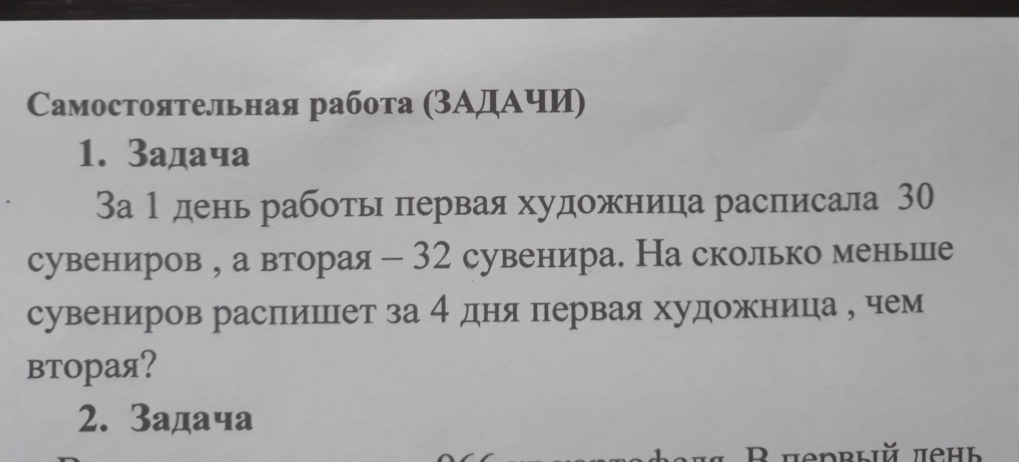 Ответ. За 4 дня первая художница распишет на 8 сувениров меньше, чем вторая.