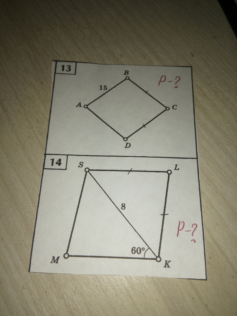 13) Т.к это квадрат, и две его стороны равны ⇒ P= 15*4=60
