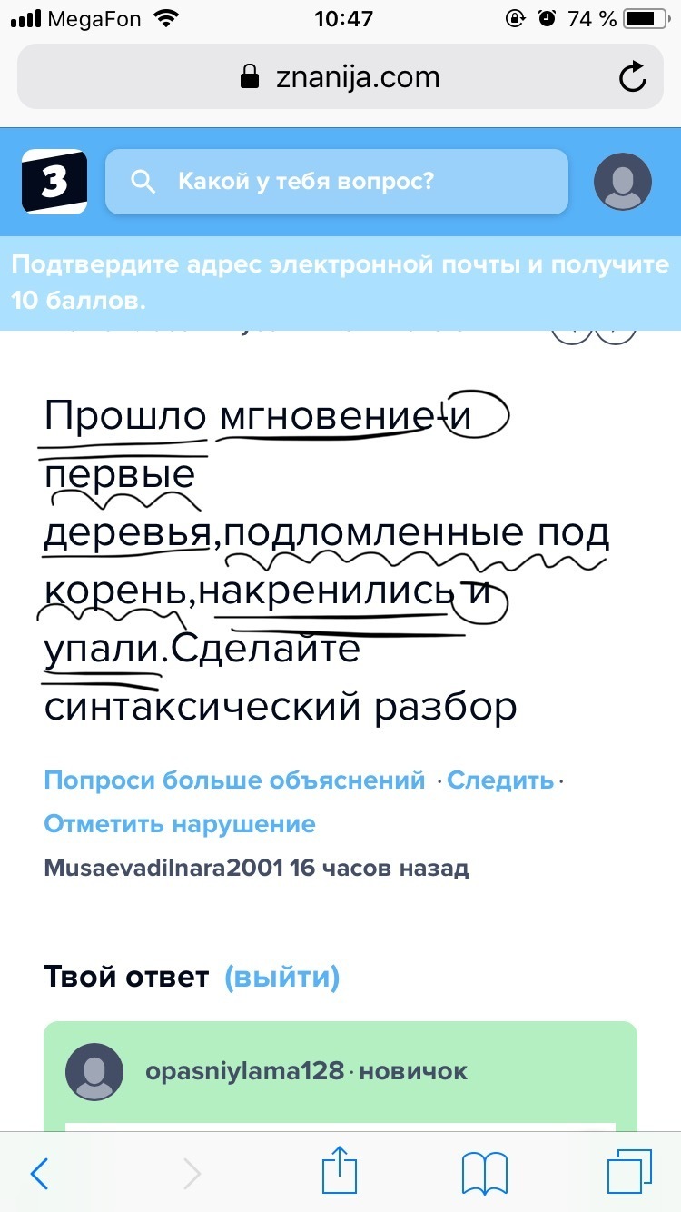 Прошло мгновение-и первые деревья,подломленные под корень,накренились и упали.Сделайте синтаксический разбор