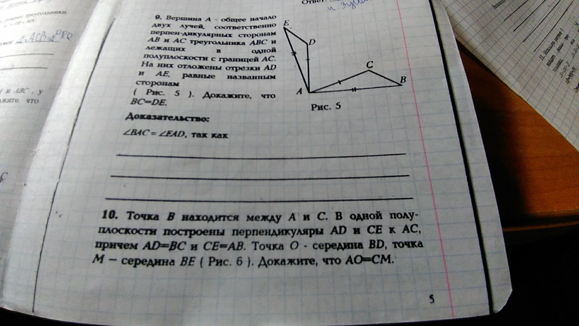 вс=де как стороны против соответственно равных углов в равных треугольниках