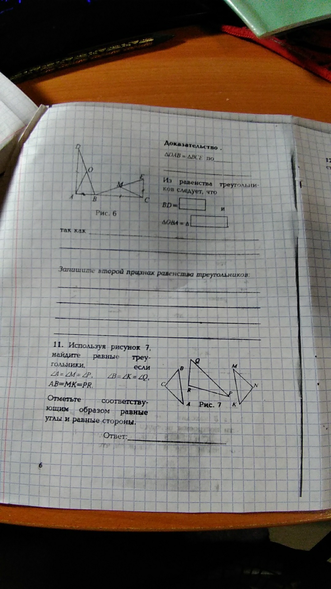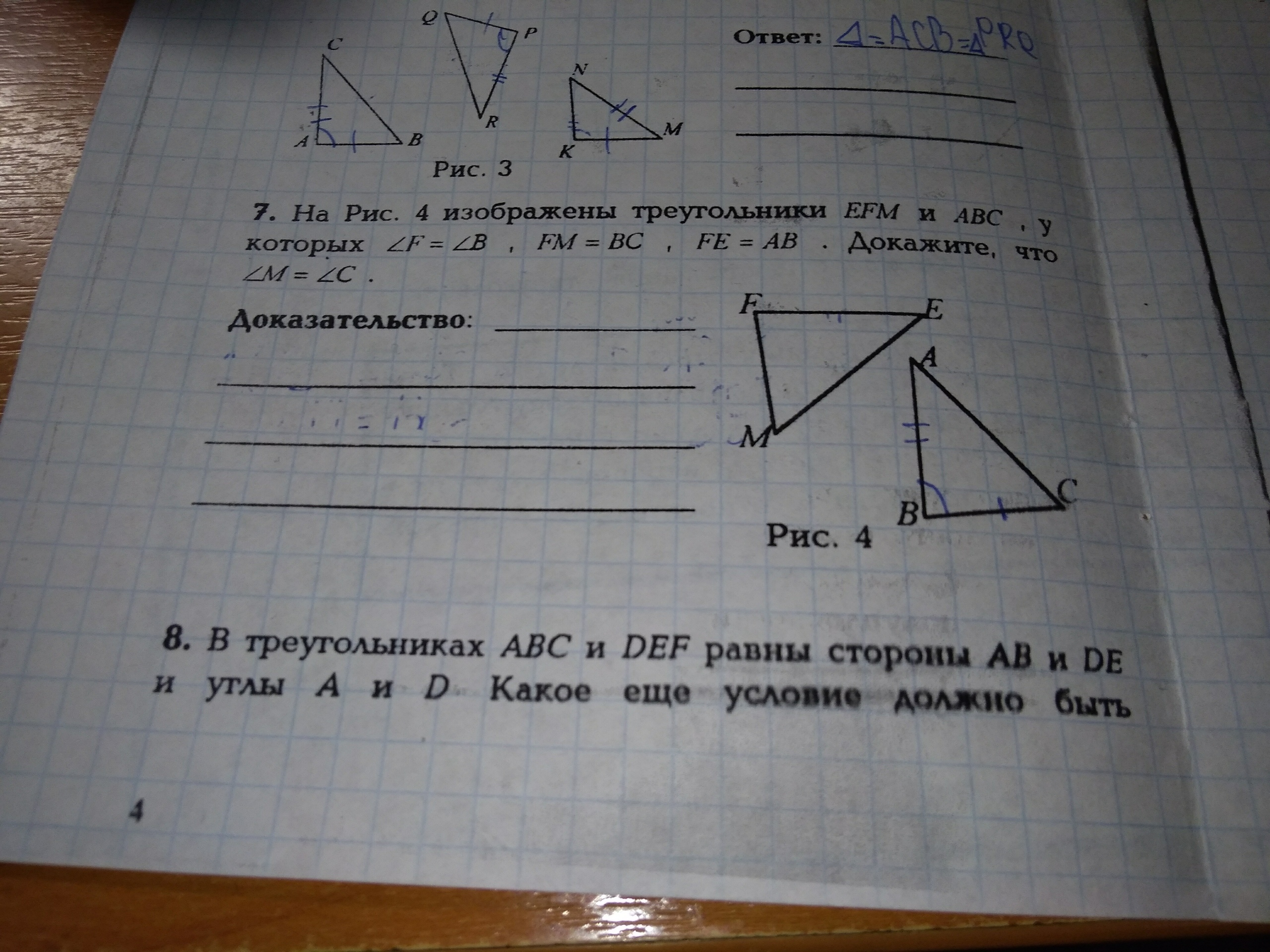 треуг фем = треуг авс (по 2 сторонам и углу между ними); угол с = углу м как углы против соответственно равных сторон в равных треугольниках