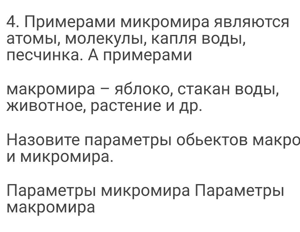 Макромир-Это обычные предметы, вещи которые окружают нас и которые можно увидеть обычным глазом