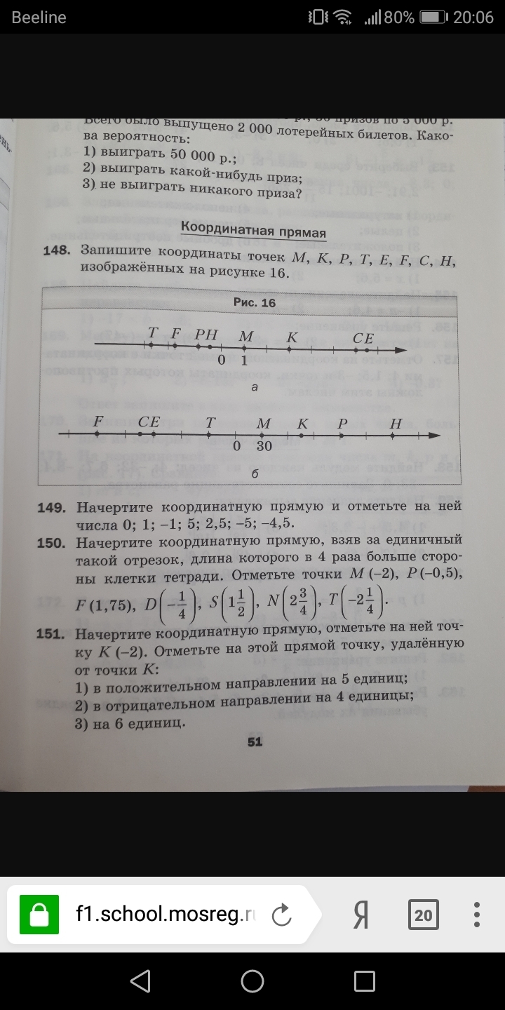 148. a) M (1;0) K (3;0) P (-1;0) T (-3;0) E (6 1/2;0) F (-2;0) C (6;0) H (-1/2;0)