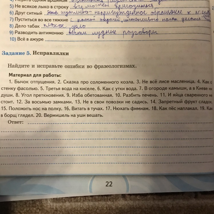 1козел отпущения. 2сказка про соломенного бычка. 3не все коту масленница. 4как о стенку горох.5-седьмая вода на киселе 6 как с гуся вода.7-в огороде бузина а в киеве дядька 8-камень предкновения 9-земля обетованная10 удиви печень 11и яйца выеденного не стоит12за семью замками13 не в свои санки не садись 14 запретный плод сладок 15 положить зубы на полку 16витать в облаках 17курить фимиам 18как кот наплакал 19как в воду глядел 20лапшу на уши вешать.