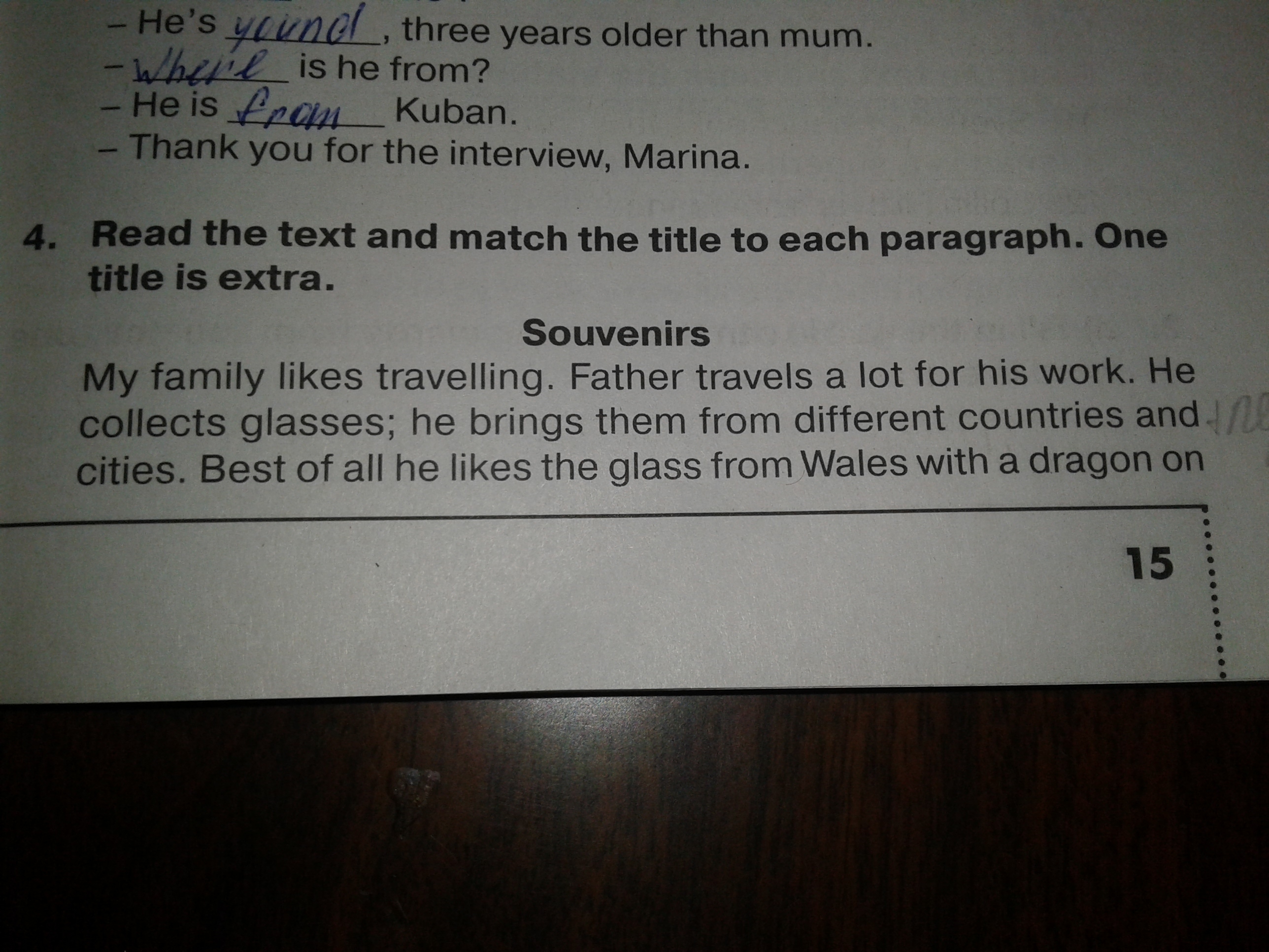 Моя семья очень часто путешествует. Папа путешествуете очень много благодаря его работе. Он коллекционирует очки:собирая их из множества стран и городов. Лучше всего ему нравятся очки из Уэльса