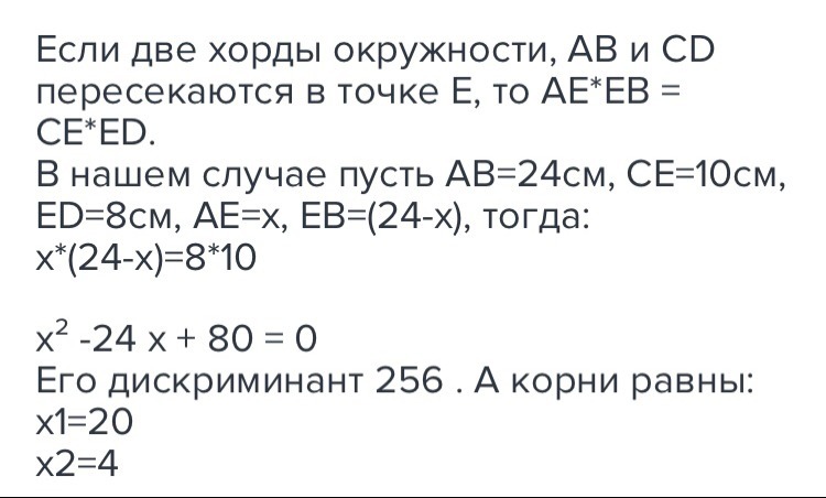 Хорда длинной 11 см пересекая другую хорду делит её на отрезки 5 и 4. Найти длинну отрезков первой хорды.