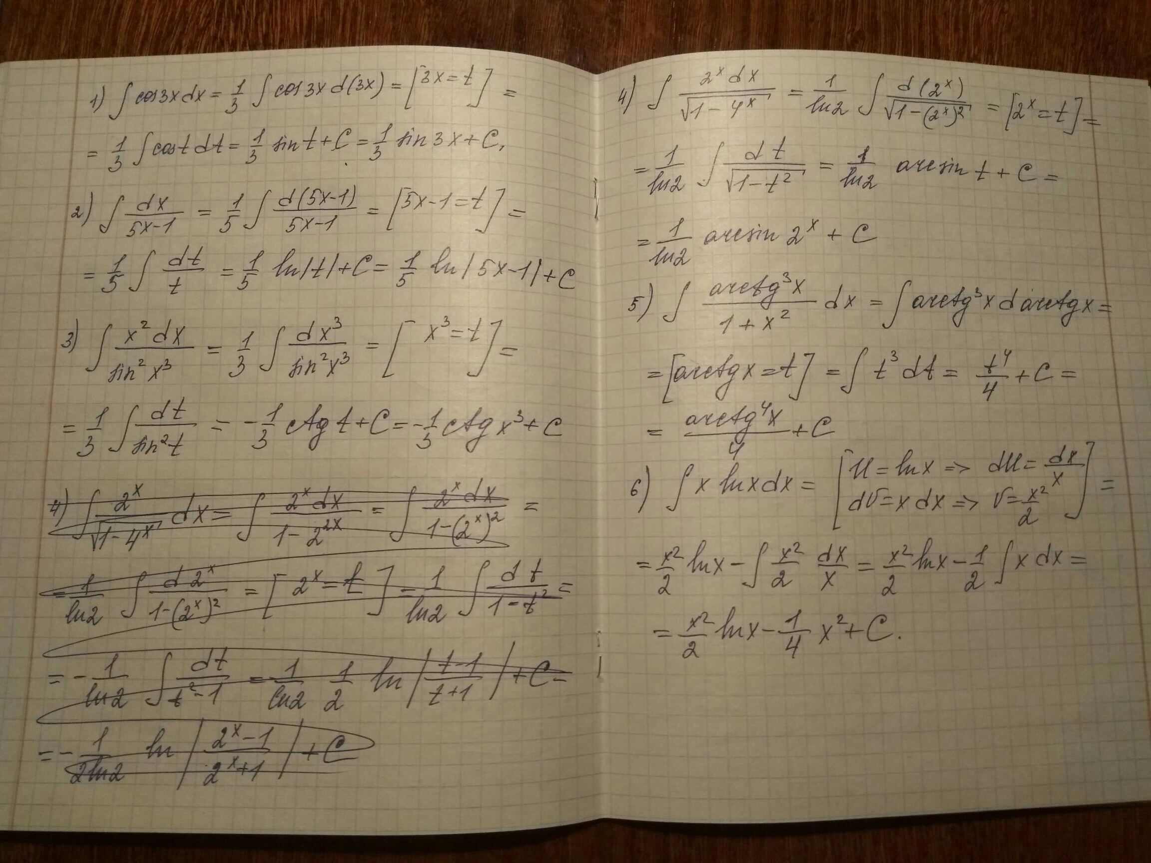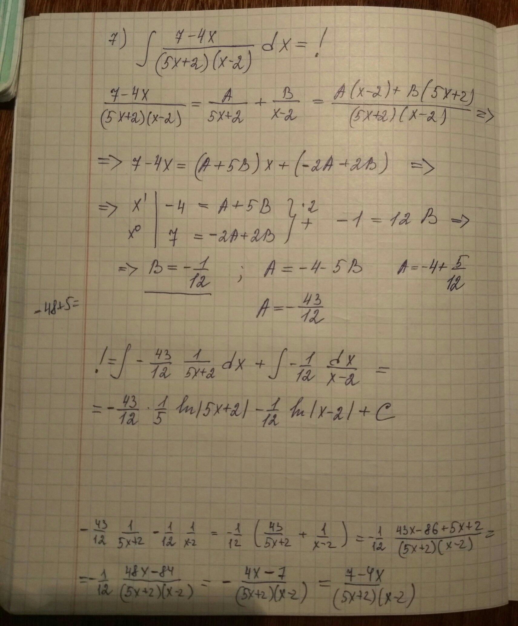Использовали: интегралы 1-5 внесение под знак дифференциала (замену переменной), интеграл 6 - интегрирование по частям, интеграл 7 - метод неопределенных коэффициентов. Табличные интегралы.