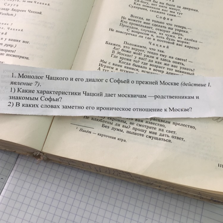 Чацкий говорит, что в Москве много богатых людей ( " что за тузы в Москве живут и умирают " ). Он думает, что в его окружении много бездельников,которые проводят время на балах и только и делают , что ищут женихов для своих дочерей. Он осуж8дает крепо9стников, которые держат актеров , которые приносят им радость в черном теле и продают людей после того, как интерес к искусству пропадает. Чацкий предполагает, что детям в Москве не дают хорошего образования и набирают полки учителей " числом поболее, ценою подешевле". Национальное образование в загоне, дворяне разговаривают на смеси французского с нижегородским. Чацкий плохо думает и об авторитетах старш8его поколения, которое " сгибалось вперегиб" и получало чины за мелкие услуги, оказанные императрице.