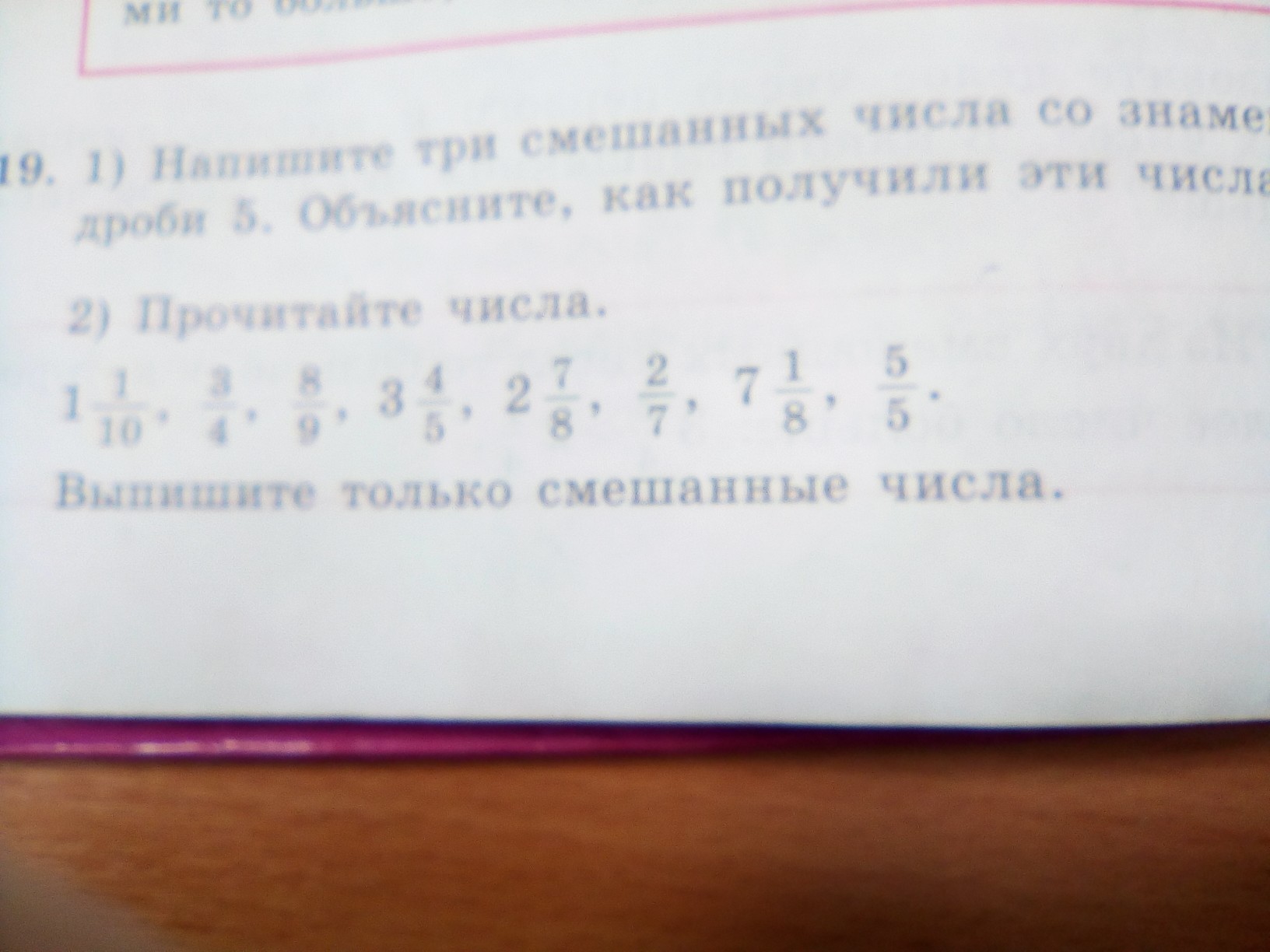 Одна целое одна десятая, три четвертых, восемь девятых, три целое четыре пятых, две целое семь восьмых, два седмая, семь целых одна восьмая, пять пятых.