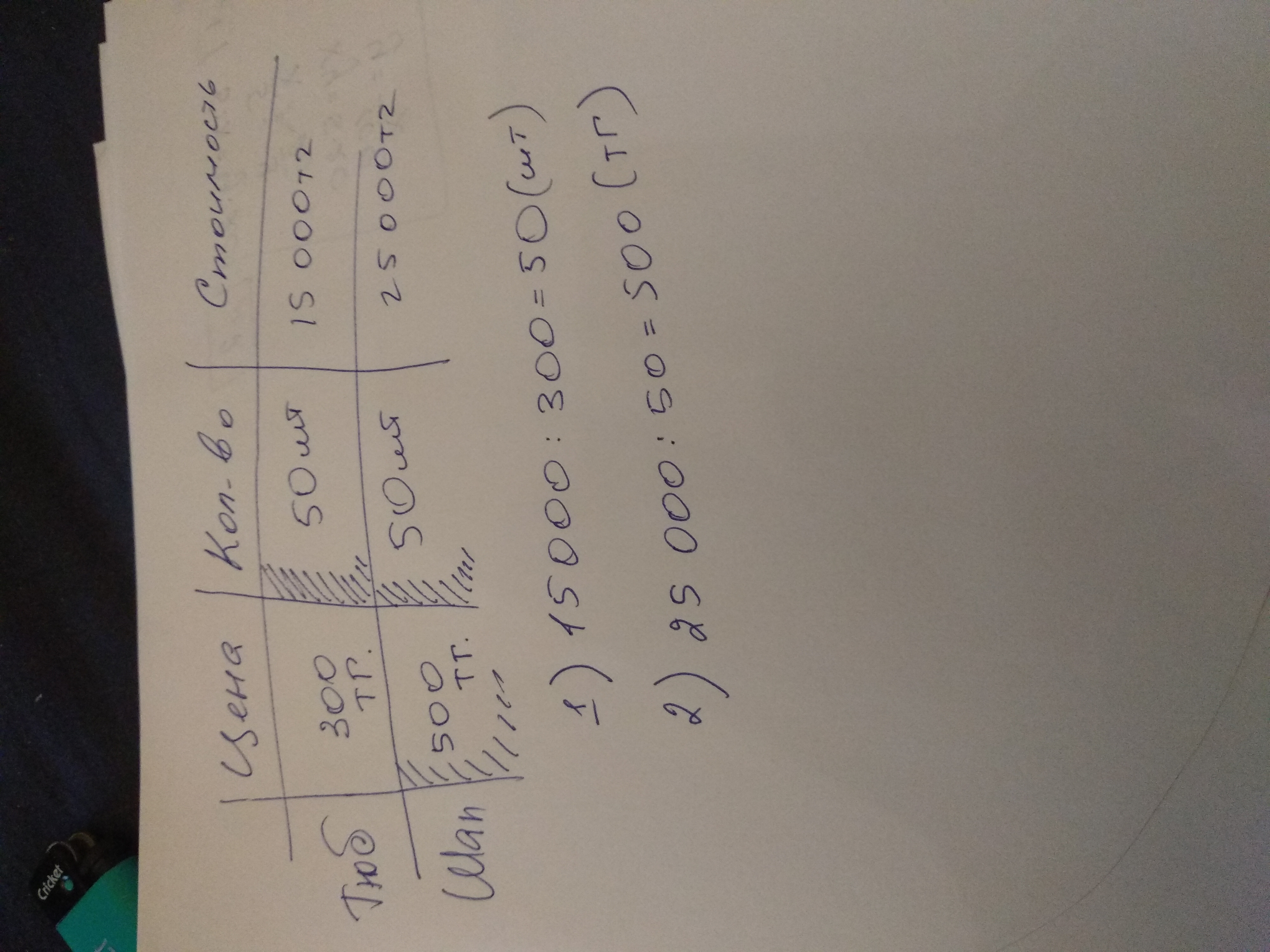 2) 25000 : 50 = 500 тг - стоит шапка.