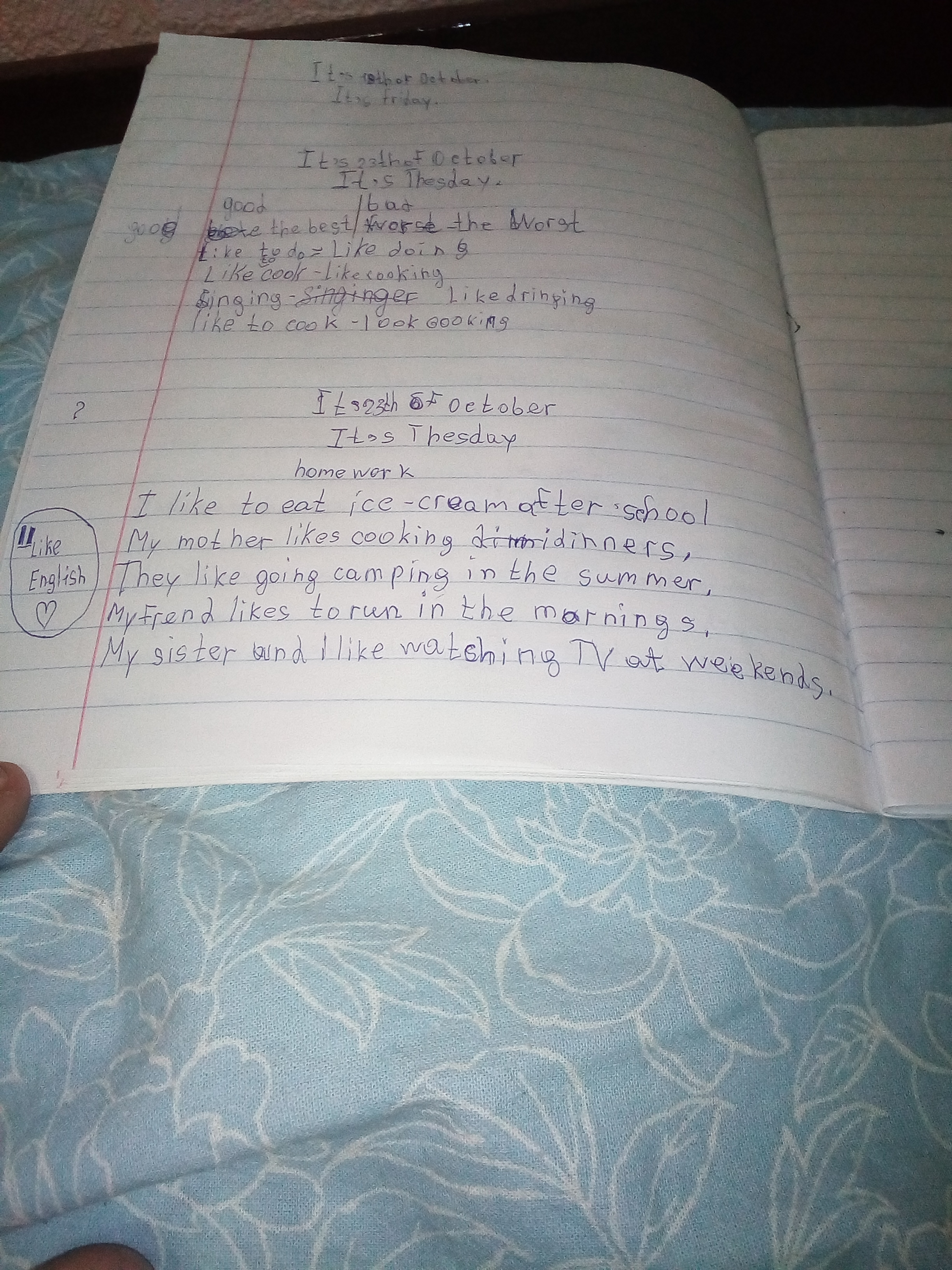 1)Я люблю есть мороженное после школы