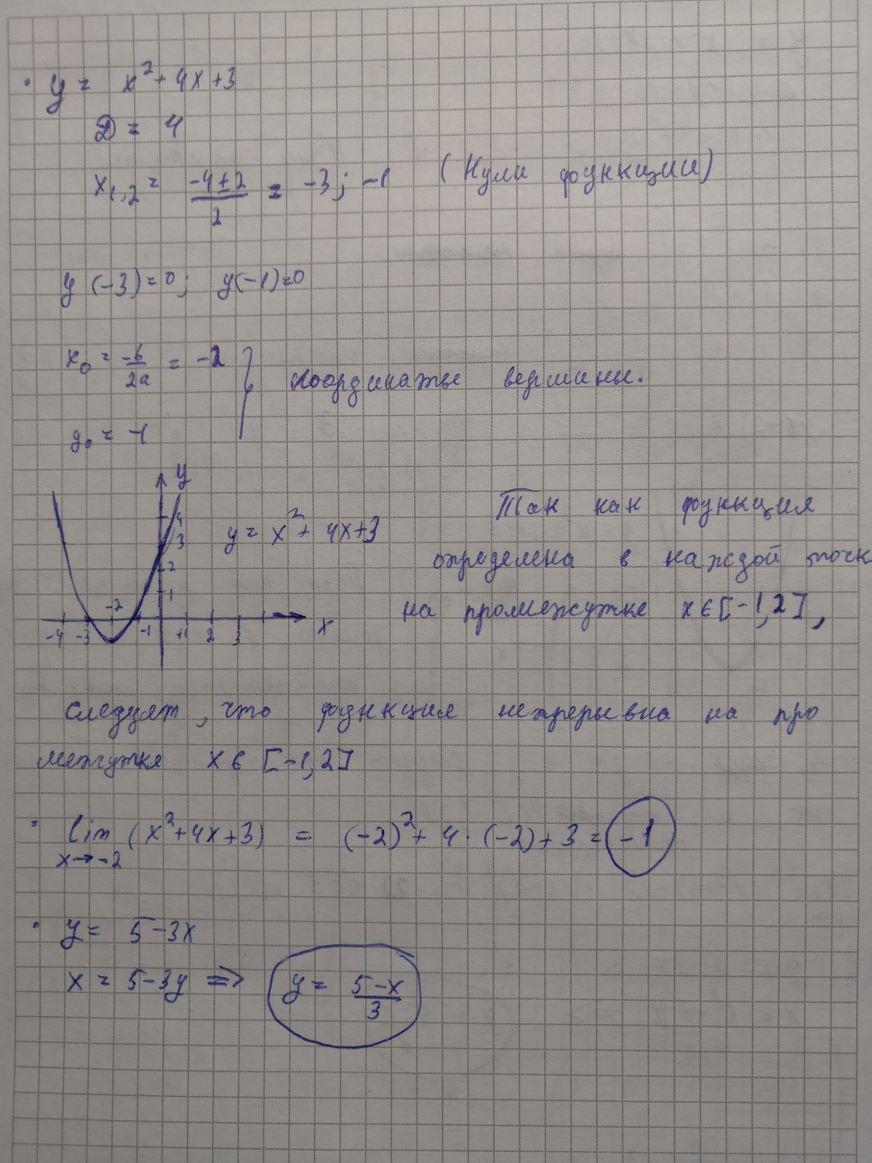1. Постройте график функции y=x²+4x+3. Является ли эта функция непрерывной на промежутке x ∈ [-1;2]? Найдите: limₓ₋ ₋₂ (2²+4x+3)