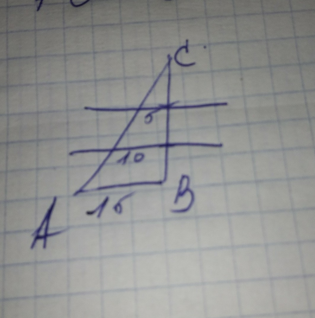 тогда : параллельная прямая, которая ближе к АВ =10, следующая 5