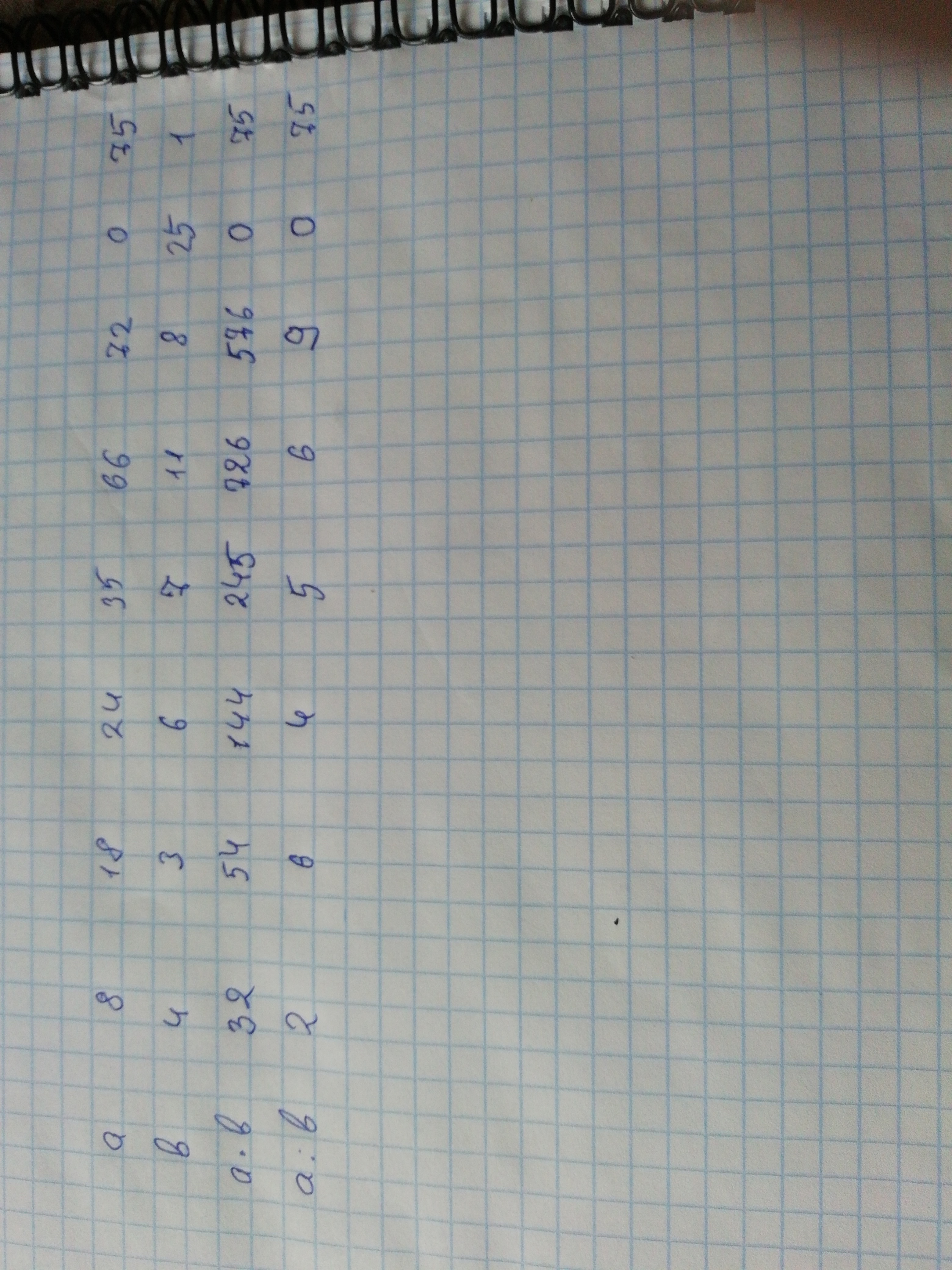 a×b) пропуски: 1) 32; 2) 54; 3) 725; 4) 0; 5) 75.