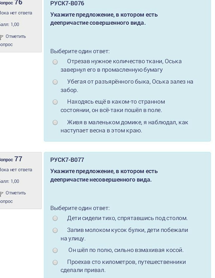 1.Отрезав(дееприч.соверш.вида,суффикс-В) нужное количество ткани,Оська завернул его в промасленную бумагу.
