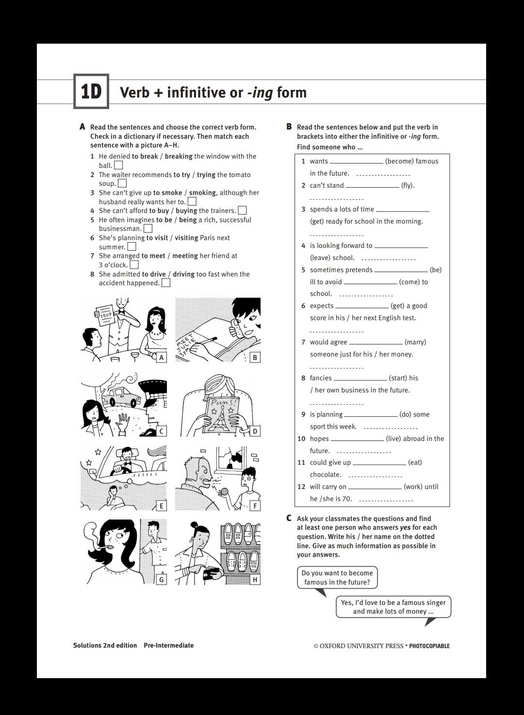 B: 1. to become 2. flying 3. getting 4. leave 5. to be, coming 6. to get 7. to marry 8. to start 9. to do 10. to live 11. to eat 12. working