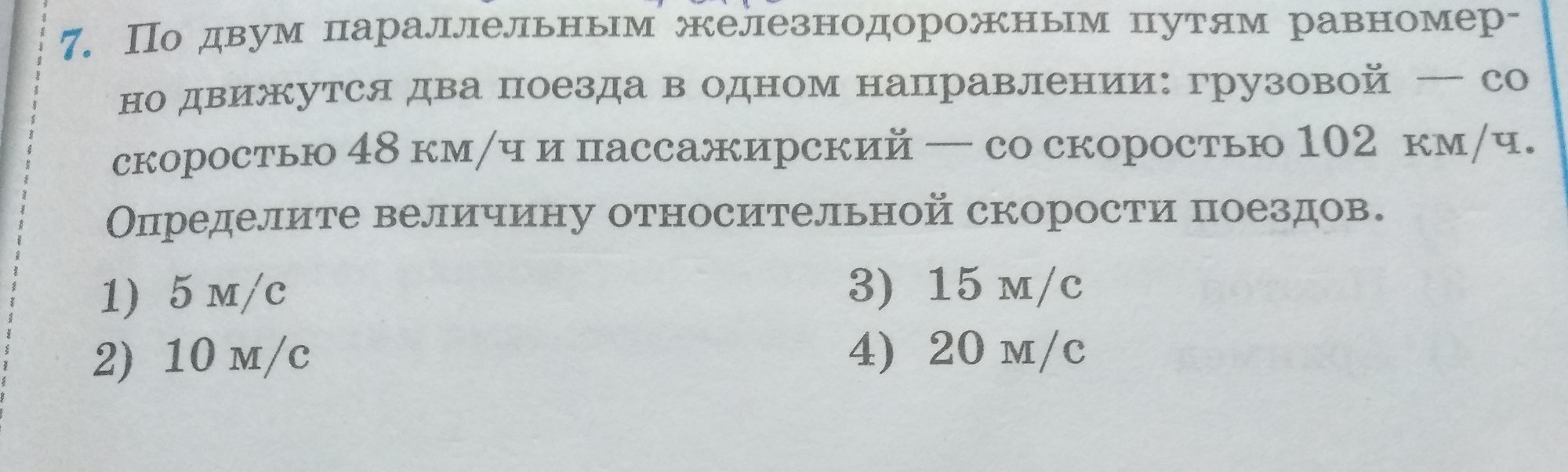 Т.к двигаються в одном направлении, то v=v1-v2. 102 - 48 = 54км/ч = 15м/с