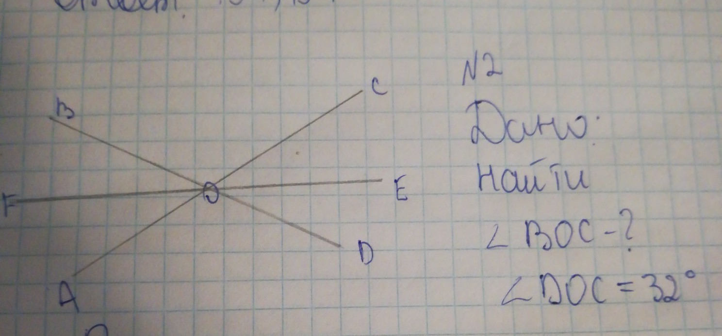 2.угол BOC = AOD = (360 - 32 - 32) : 2= 296 : 2=148 градуса