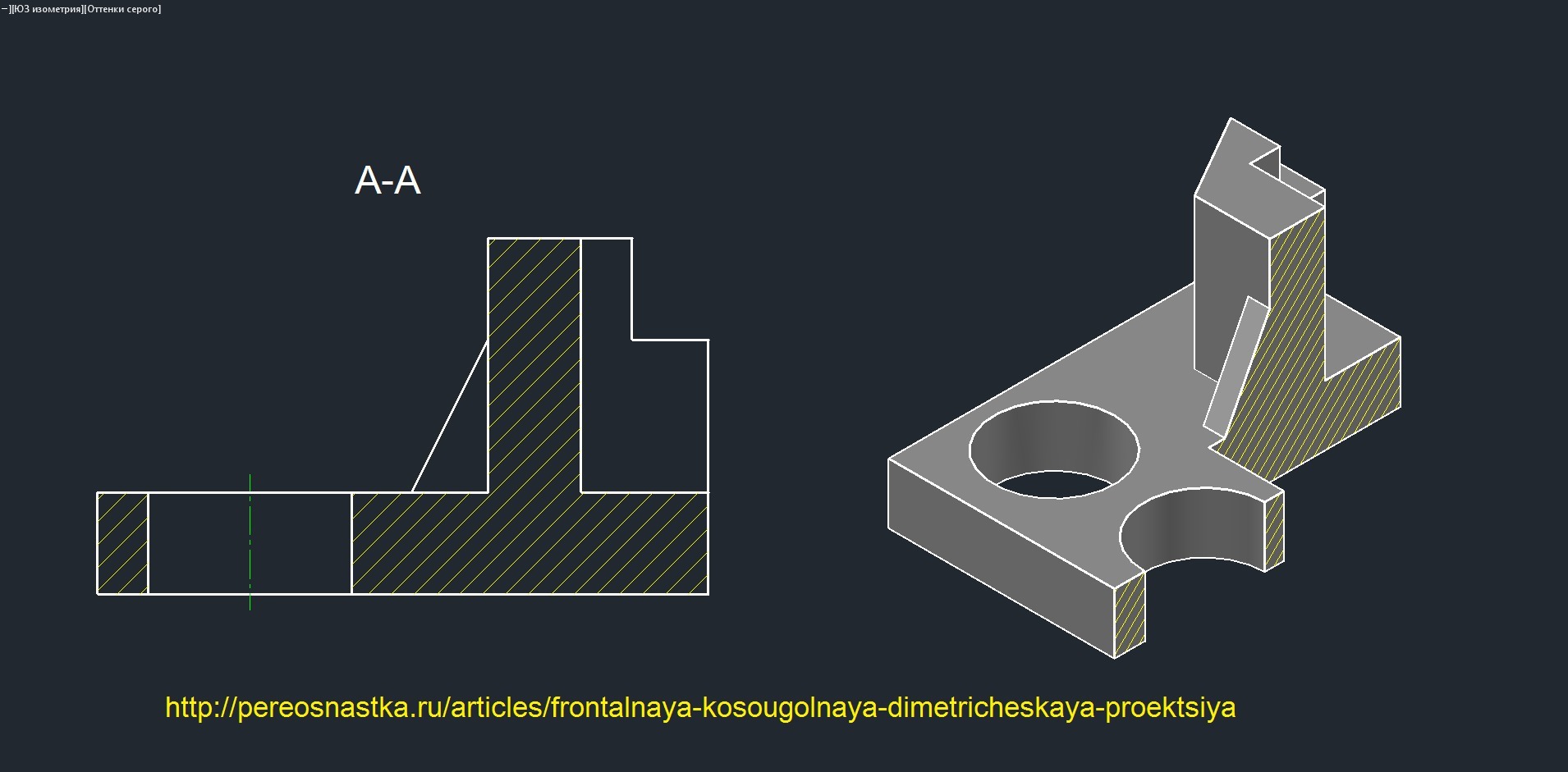Геморройно делать диметрию в моей программе, могу только вам подсказать, что размер детали будет искажаться по оси Y в два раза в меньшую сторону, а по осям X и Z, он будет истинным. Почитайте, на самом деле, там не очень уж и сложно. В изображении например ссылка, дотошно все расписано как это "чудо" строить. Удачи в учёбе.