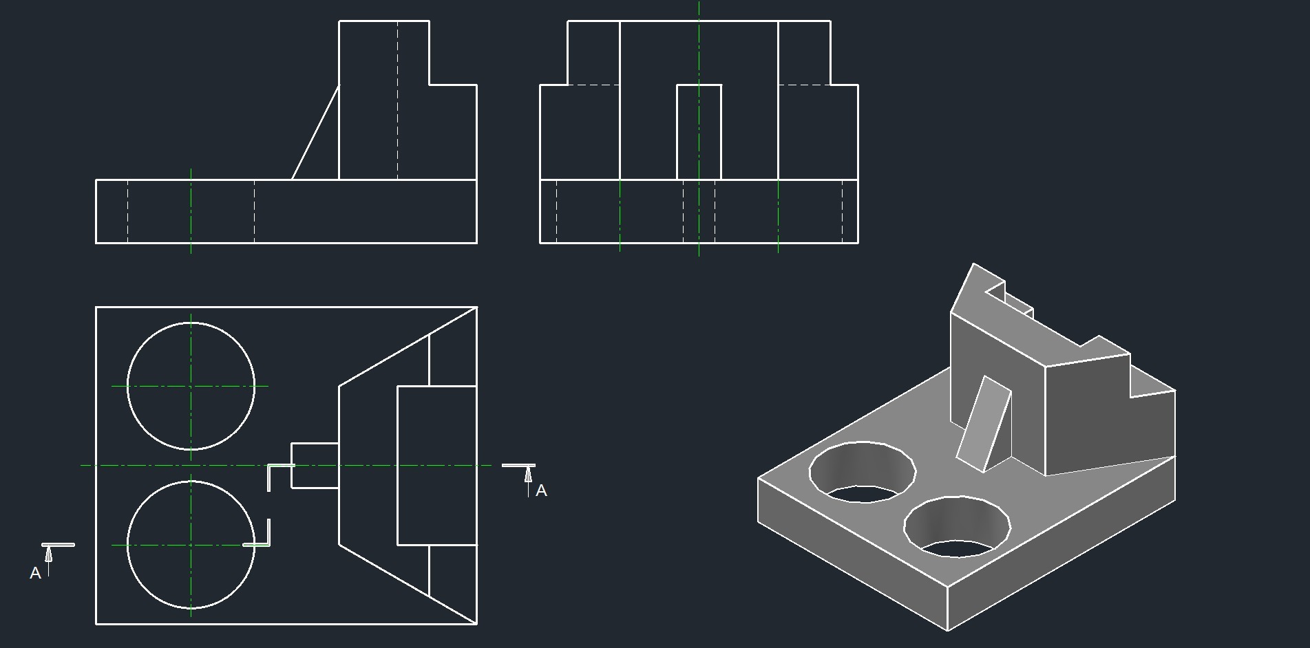 Помогите сделать сложный ступенчатый разрез,вид слева и изометрию
