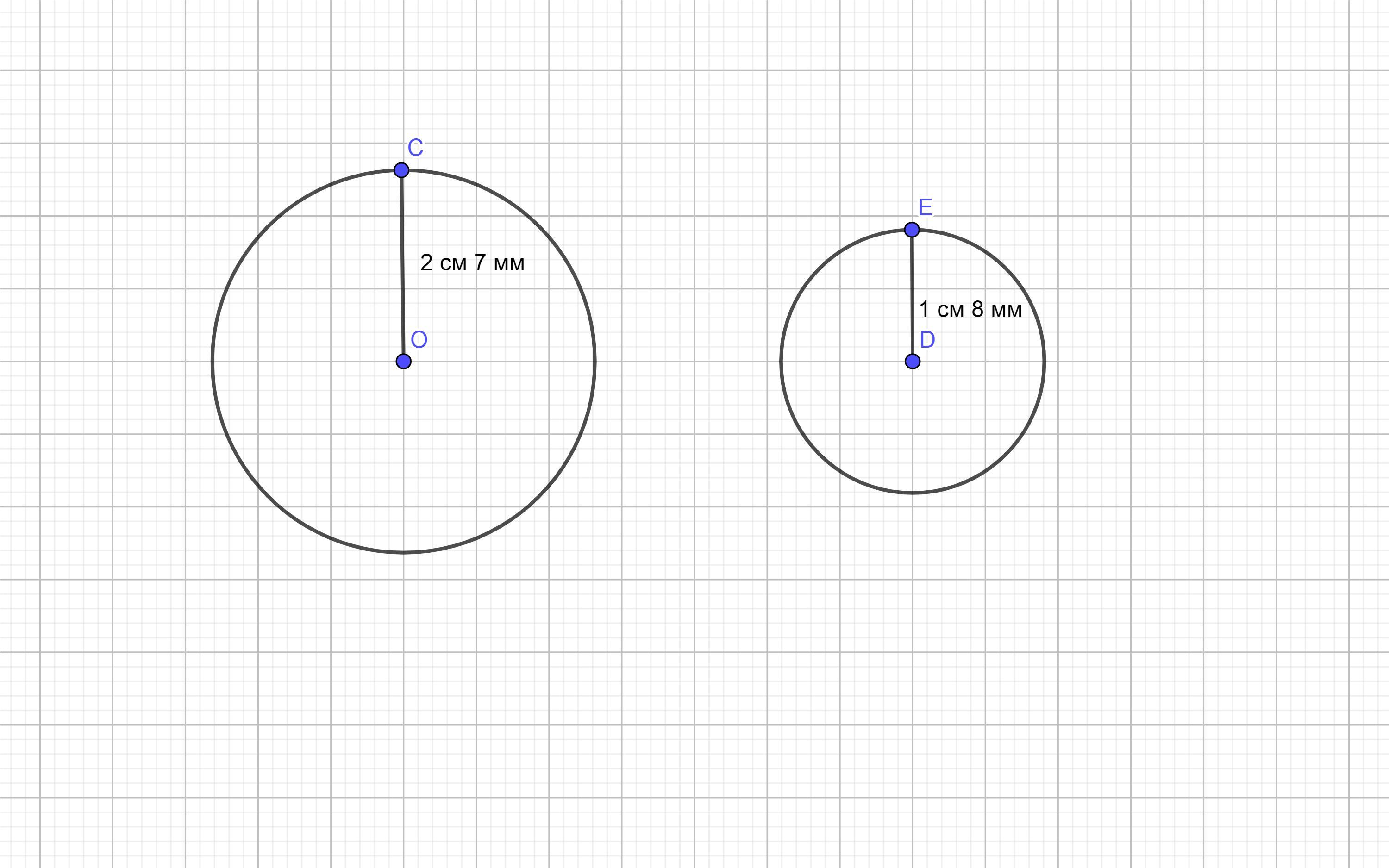 2 см 7 мм = 2*10+7=27 мм - радиус первой окружности