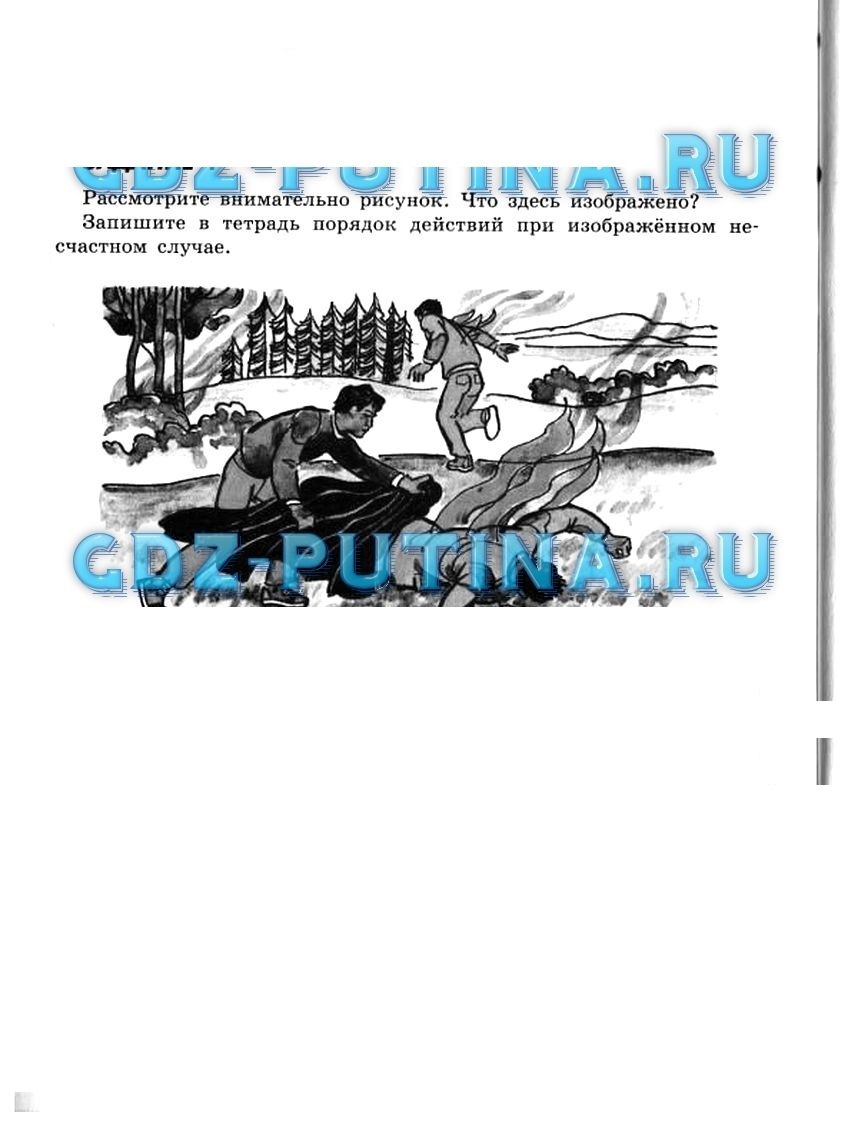 Рассмотрите внимательно рисунок. Что здесь изображено? Запишите в тетрадь порядок действий при изображённом несчастном