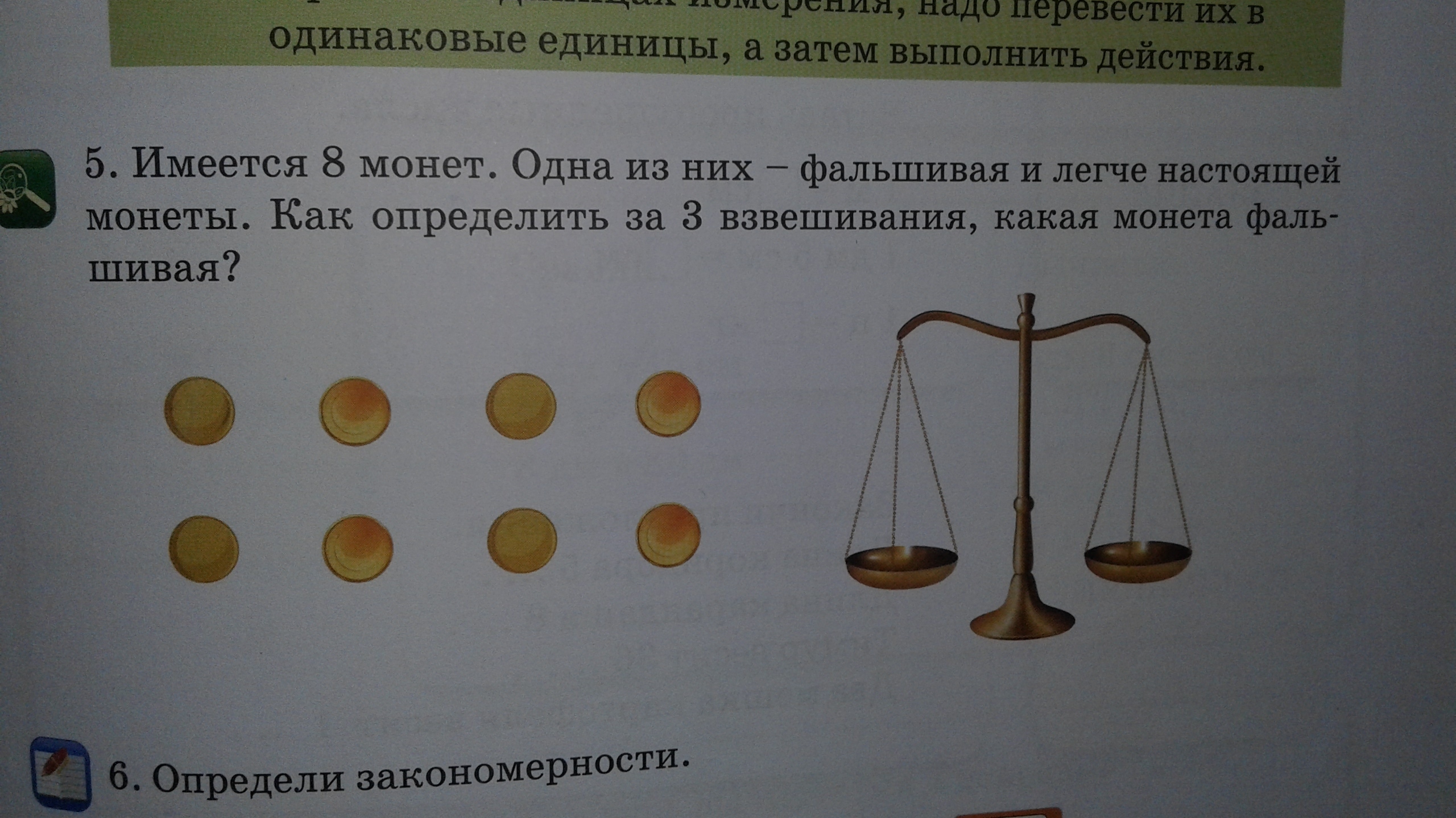 теперь кладем 1 монету в одну чашечку, вторую в другую