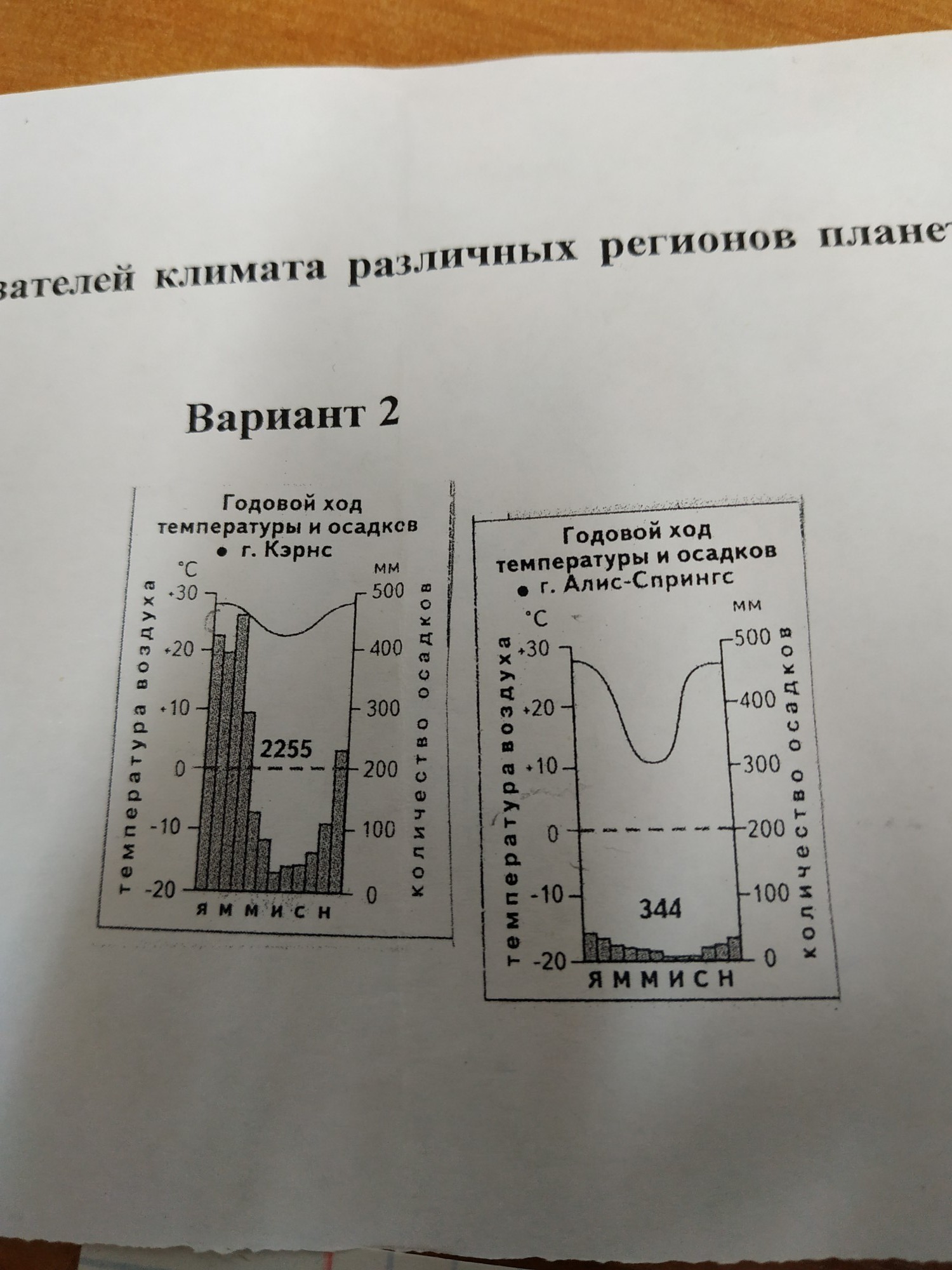 Г.Кэрнс Максимальная температура +30 градусов.Осадков 450 мм.Г.Алис-Спрингс температура свыше 30 градусов осадков максимум 45 мм