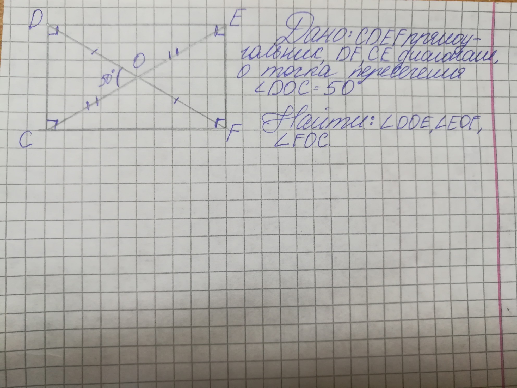 угол EOF || угол DOC, потом из 360 - 100 = 260, и поскольку угол FOC || угол DOE, то они равны и 260/2