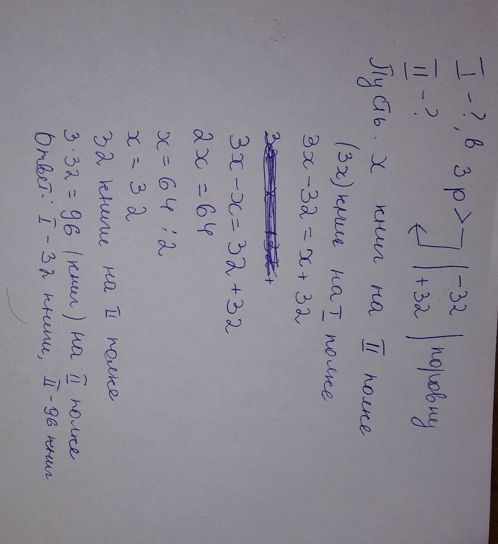 На 1 полке в 3 раза больше книг чем на 2,когда с 1 полки переставили на вторую полку 32 книги,тш на обоих полках стало поровну книг.Сколько книг было первоночально?