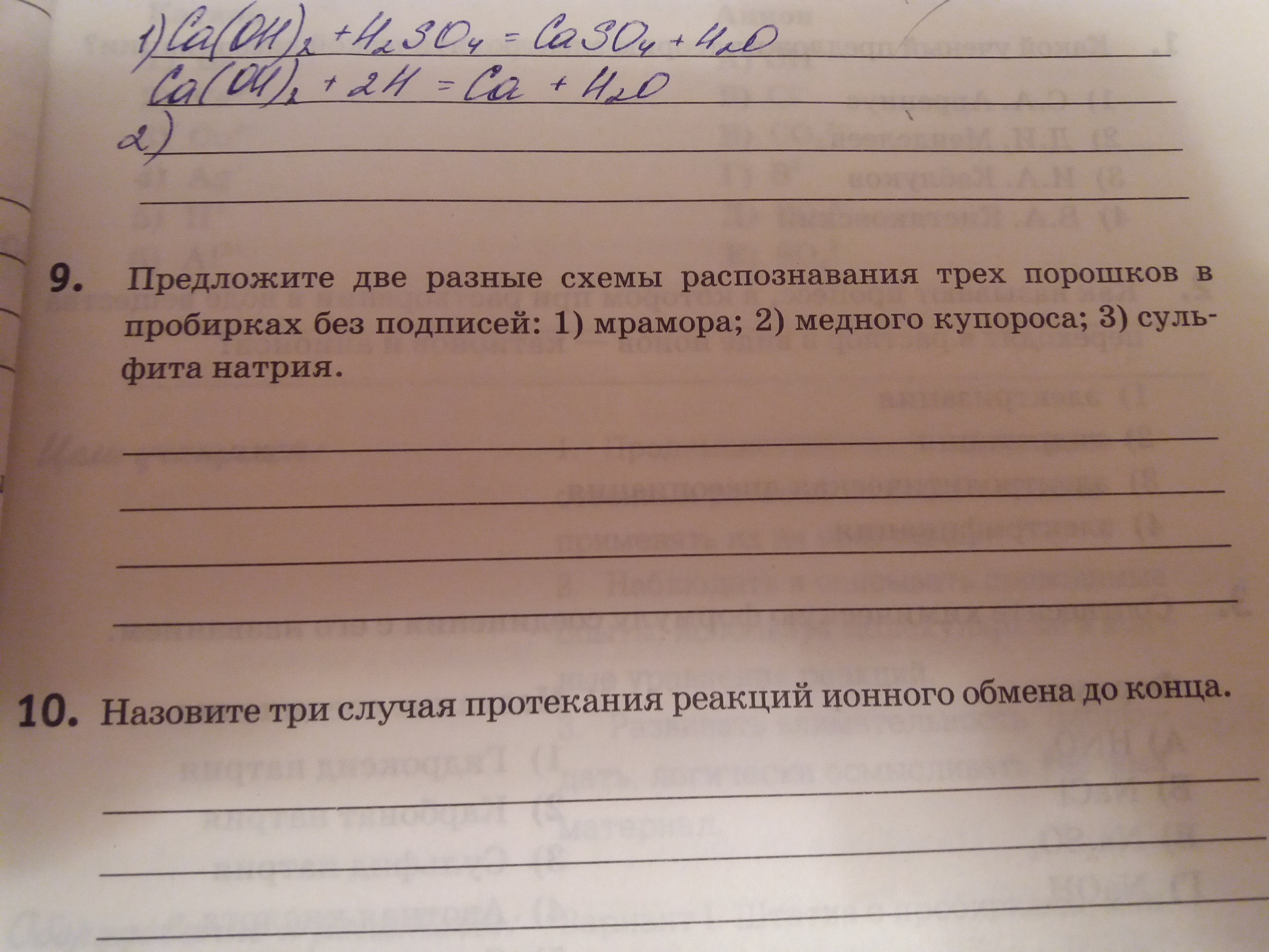 10.необходимыми условиями протекания реакций ионного обмена до конца являются: 1) образование осадка; 2) выделение газа; 3) образование малодиссоциирующих молекул воды.