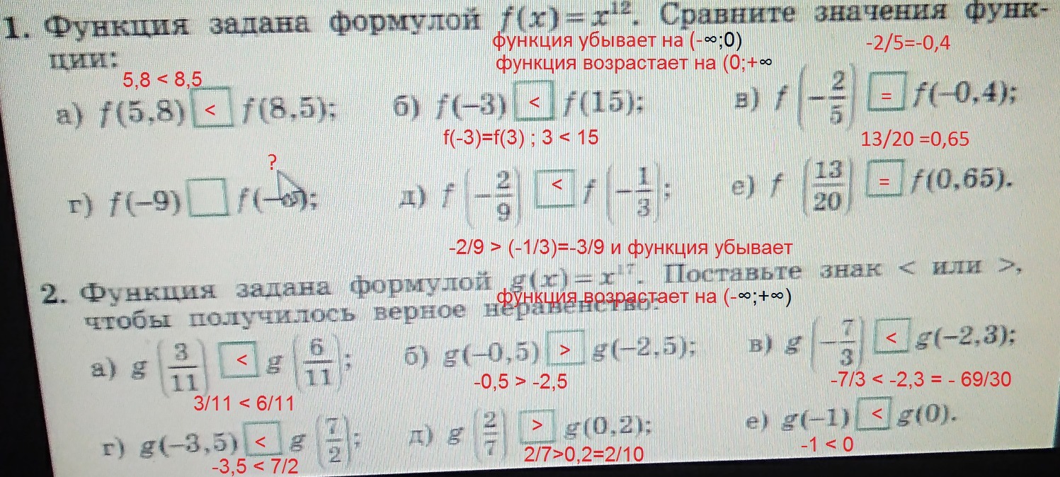 Функция возрастающая, значит большему значению аргумента соответствует меньшее значение функции