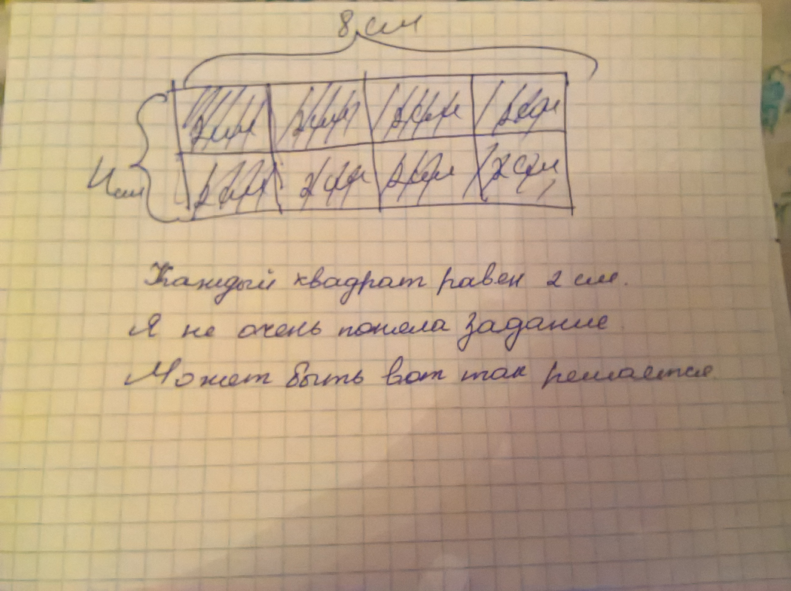 Прямоугольник разбит на квадраты. Найди длину и ширину прямоугольника, если сторона закрашенного квадрата равна 2 см.