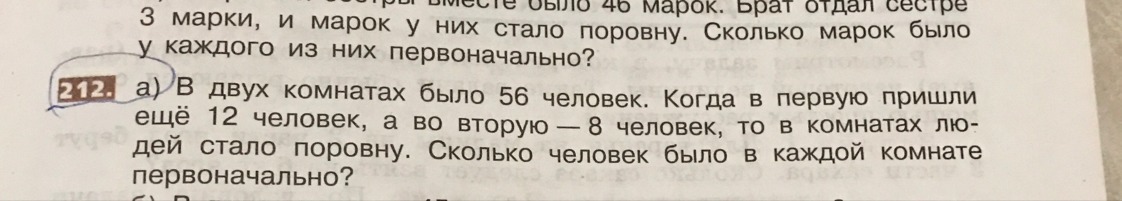 В первой комнате людей на 4 больше чем во второй. В первой сначала было 32 а во второй 24