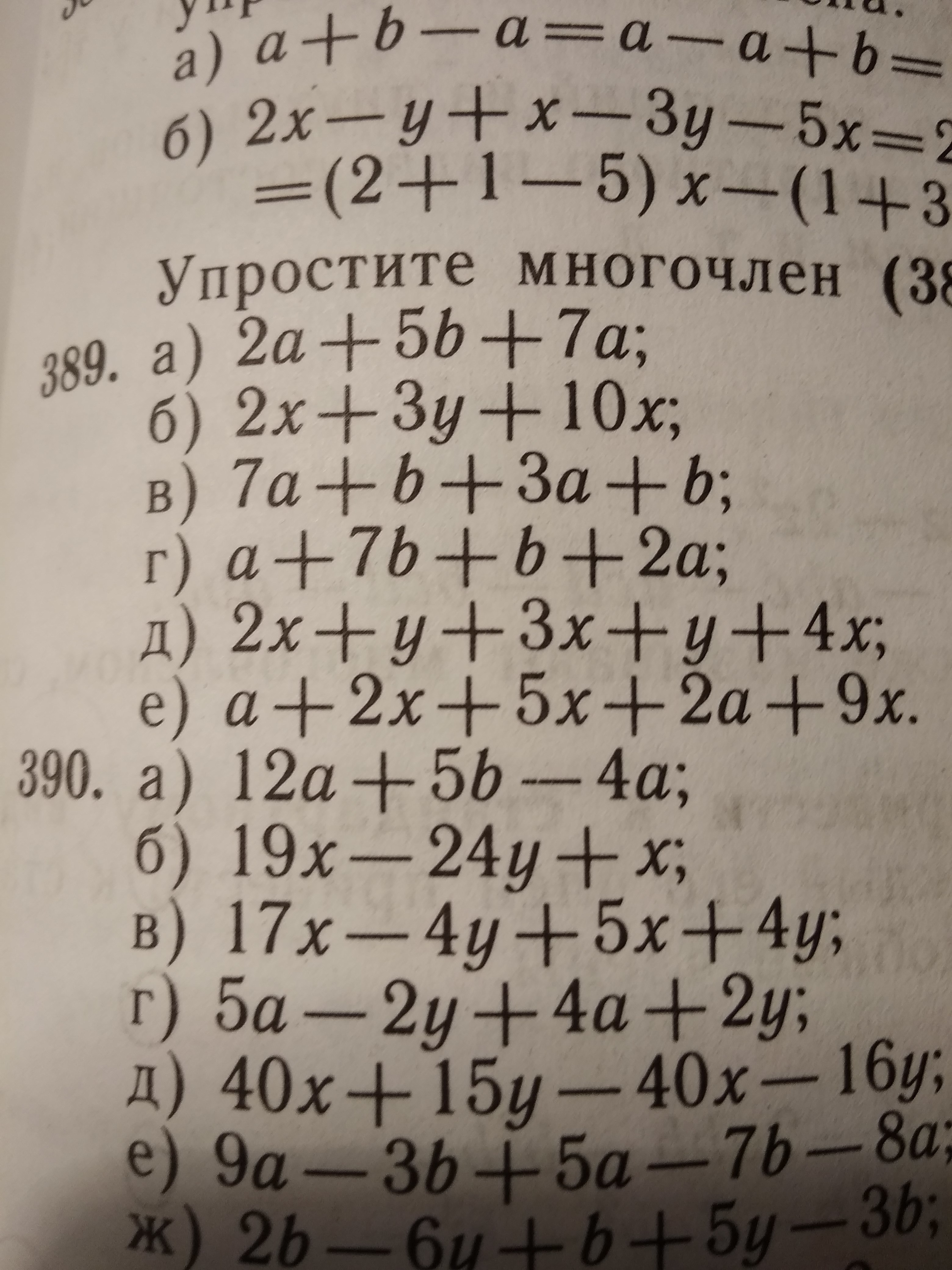 а) 2a+5b+7a=2a+7a+5b=9a+5b