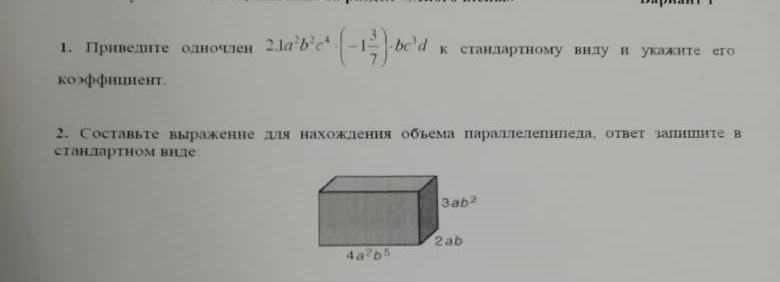 1) 2,1a²b²c^(4)bc³d=2,1a²b³c^(7)d, 2,1 коэффициент