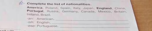 Polish, Spanish, Italian, Japanese, Chinese, Russian, German, Canadian, Mexican, British, Irish, Brazilian