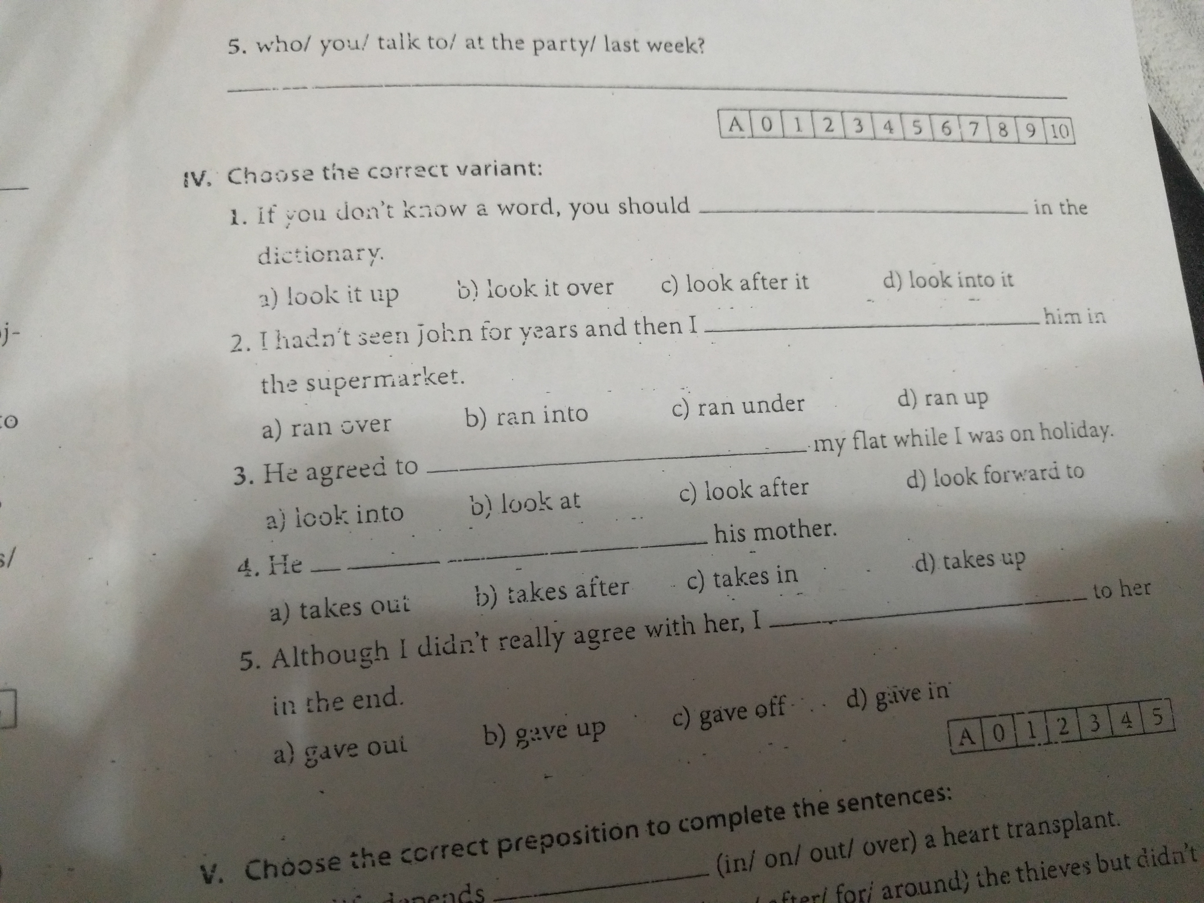 1 a 2 b 3 c 4 b 5 d