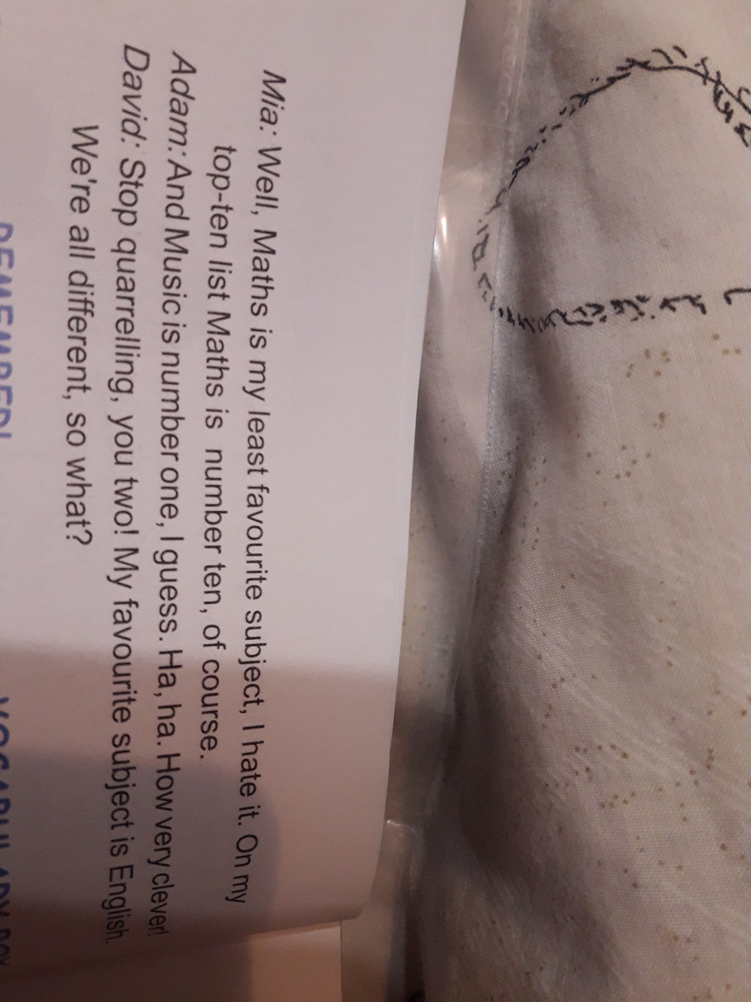 М. А.: Ну, математика - найменший улюблений предмет, я ненавиджу це. На моєму десятковому списку математики, звичайно, є десять. Я думаю, греблю і музику номер один. Ха, ха. Наскільки вдавайся Давид: перестаньш сваритися, ти два! Мій улюблений предмет - Englis Ми всі різні, так що?