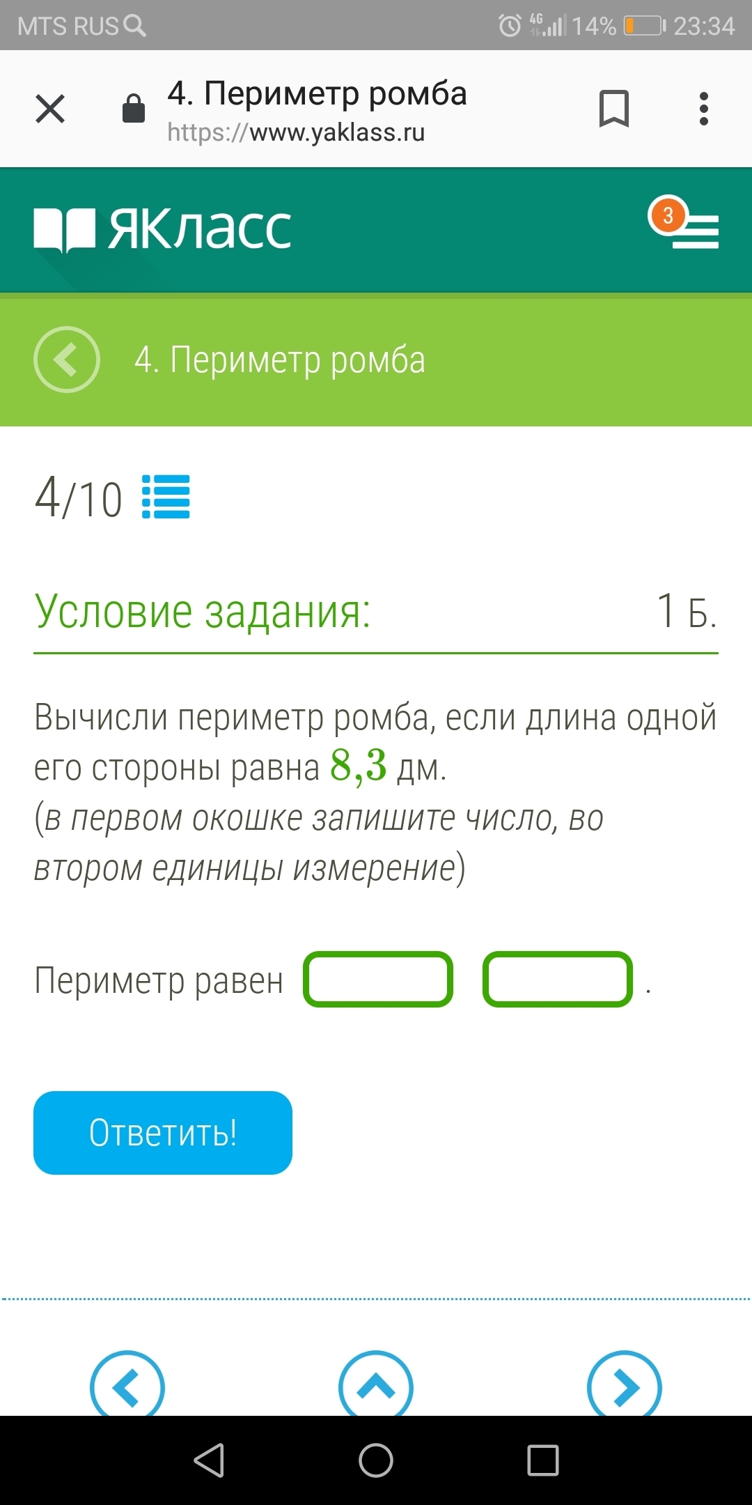 Ответ: Периметр рома равен 33,2