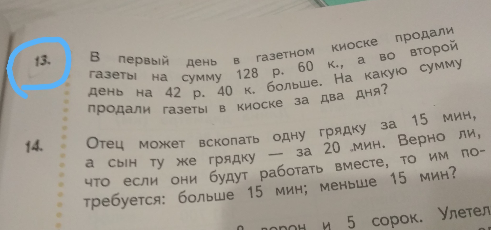 в первый день в газетном киоске продали газеты на сумму 128 руб. 60 коп. во второй день продали на 42 руб. 40 коп. больше На какую сумму продали газеты В киоске за 2 дня