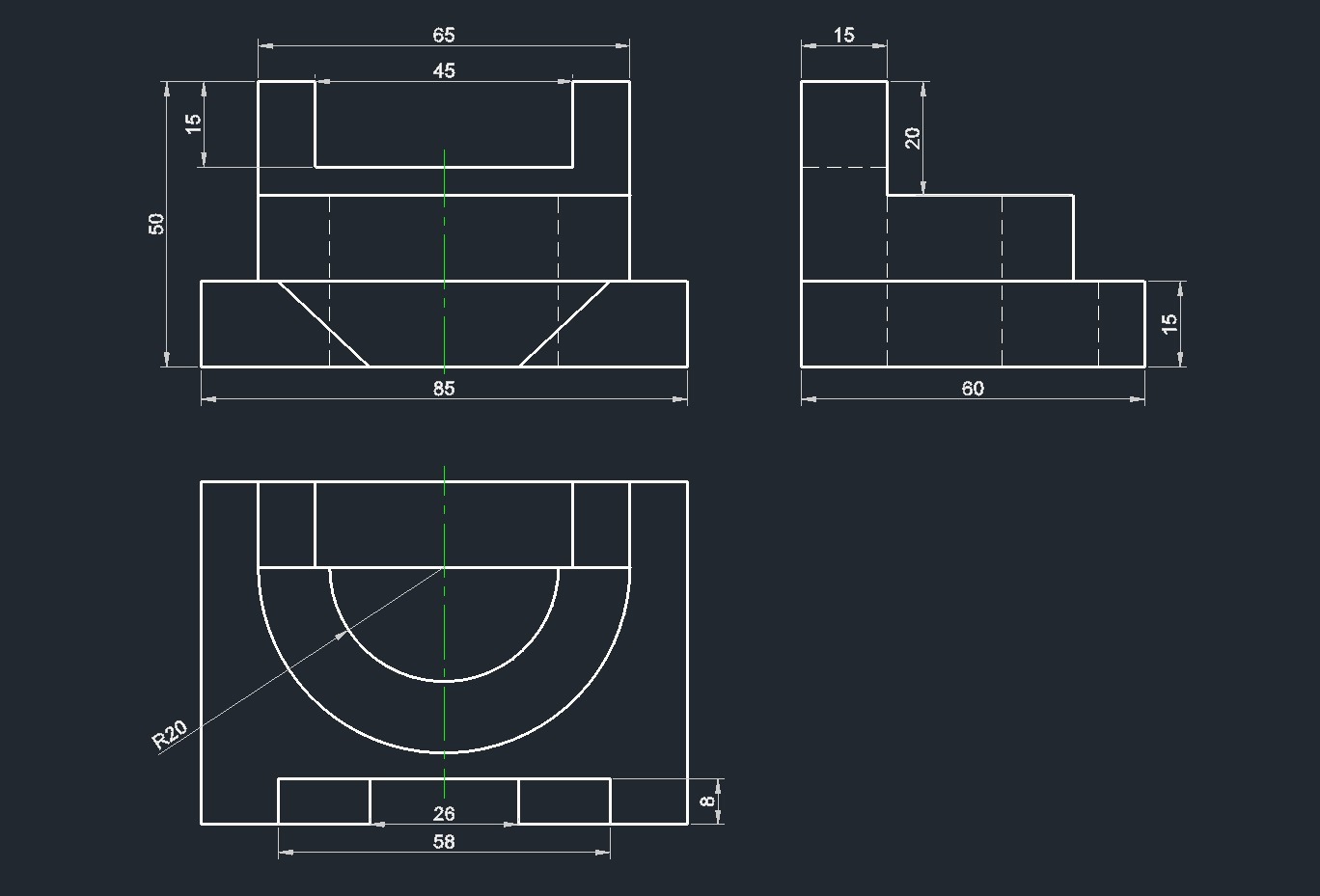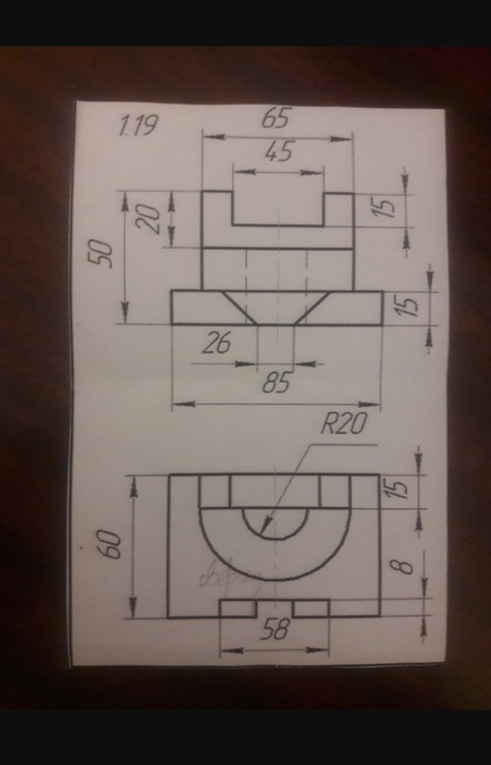 Помогите ,пожайлуста . Нужно начертить аксонометрию по видам и начертить вид сбоку. Сверху -это вид спереди , а снизу - вид сверху.