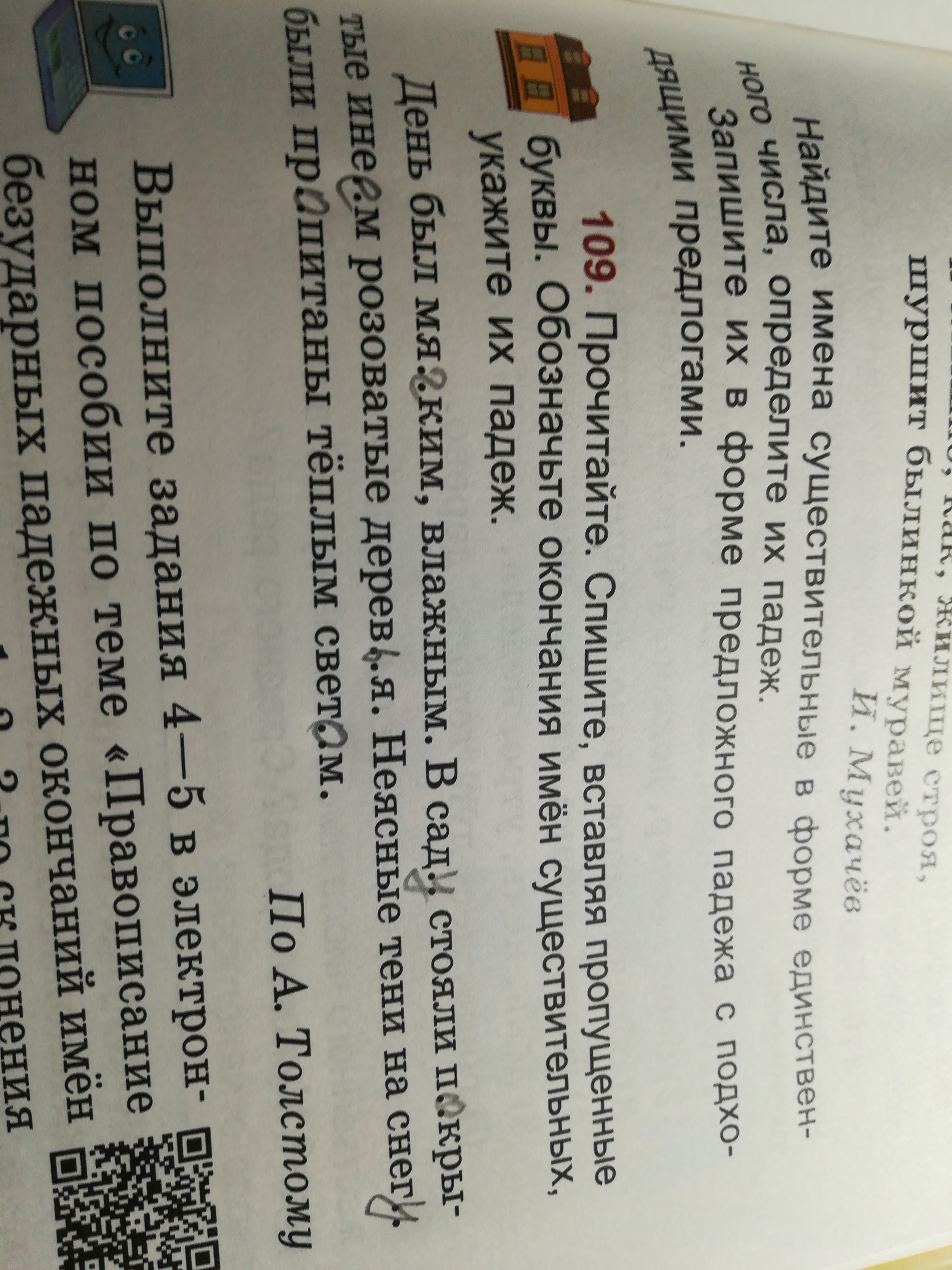 День был мяГким, влажным. В садУ стояли пОкрытые инеЕм розоватые деревЬя. Неясные тени на снегУ были прОпитаны теплым светОм.
