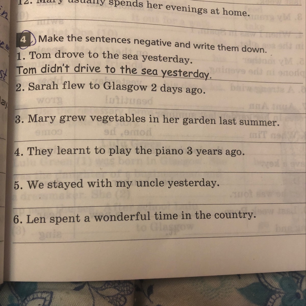 5 We didn't stay with my uncle yesterday.