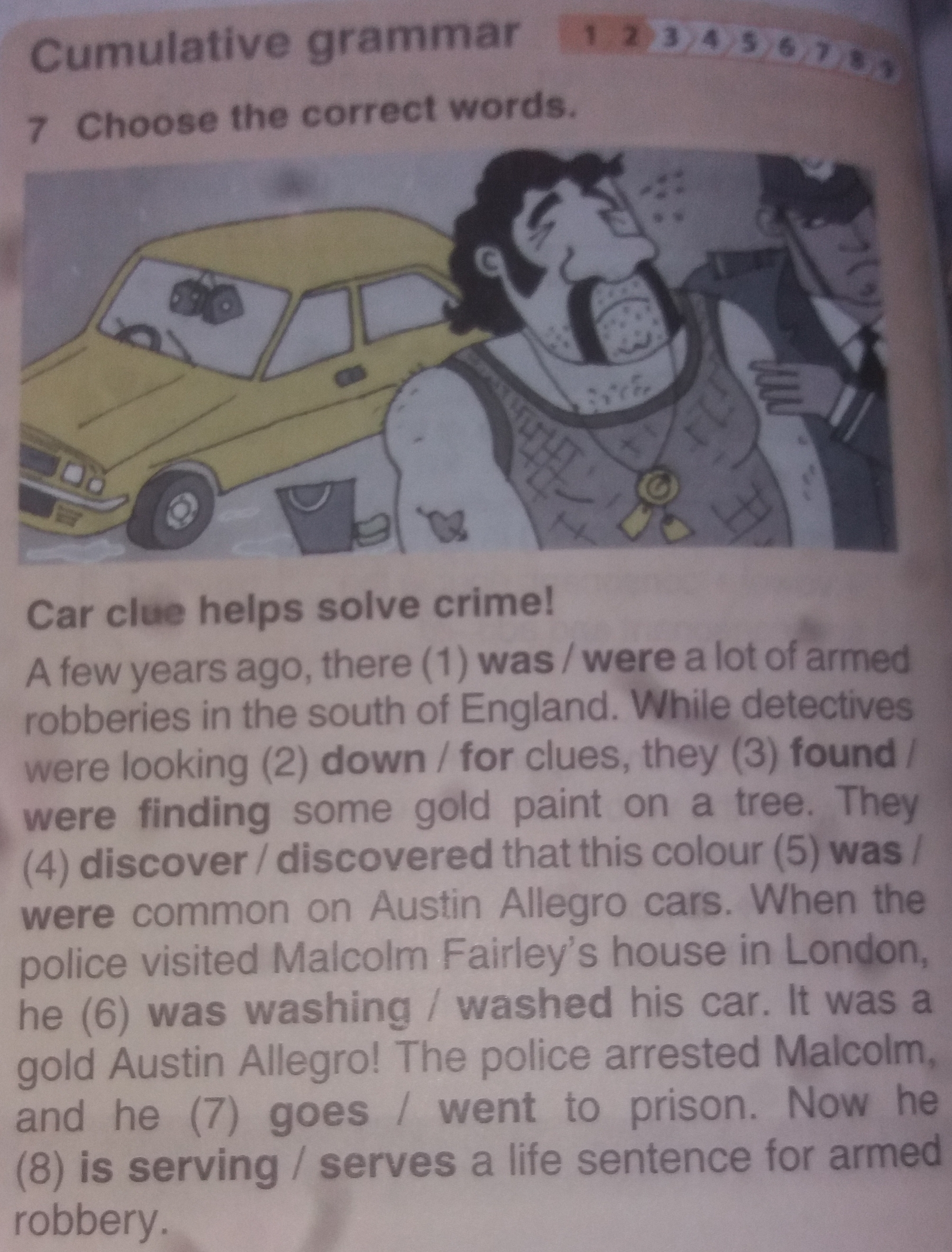 1 were 2 for 3 found 4 discovered 5 was 6 was washing 7 went 8 is serving
