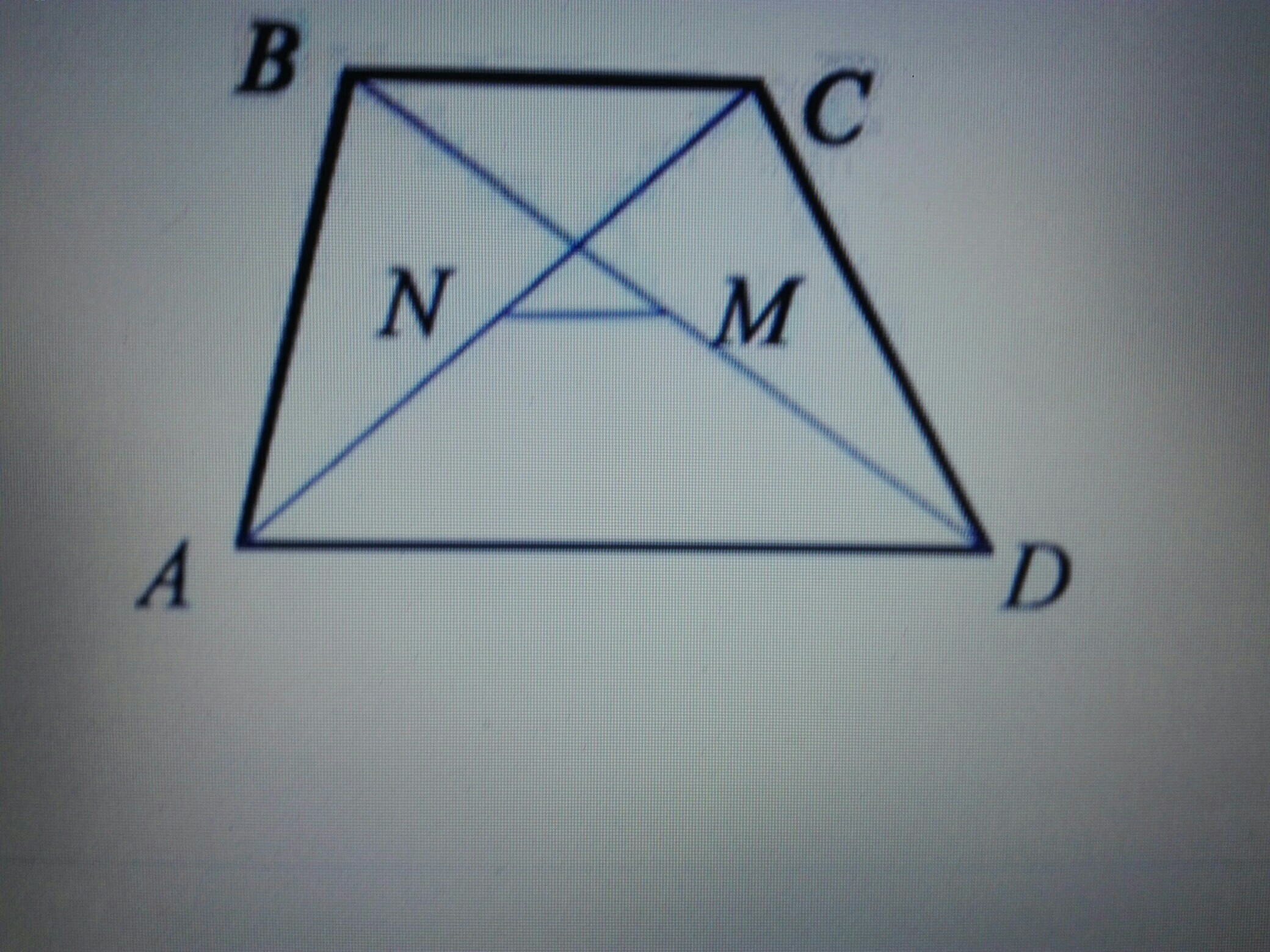 Продолжим линию MN . Получим точки К и Р на боковых сторонах трапеции. KP - средняя линия трапеции.