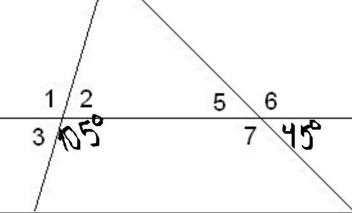 ∠7+∠8=180° - смежные углы. ⇒ ∠7=180°-45°=135°
