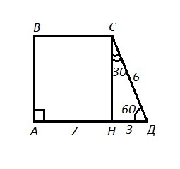 АВСД - трапеция, ∠А=∠В=90° , ∠Д=60° , СД=6 см. Найти: ВС.
