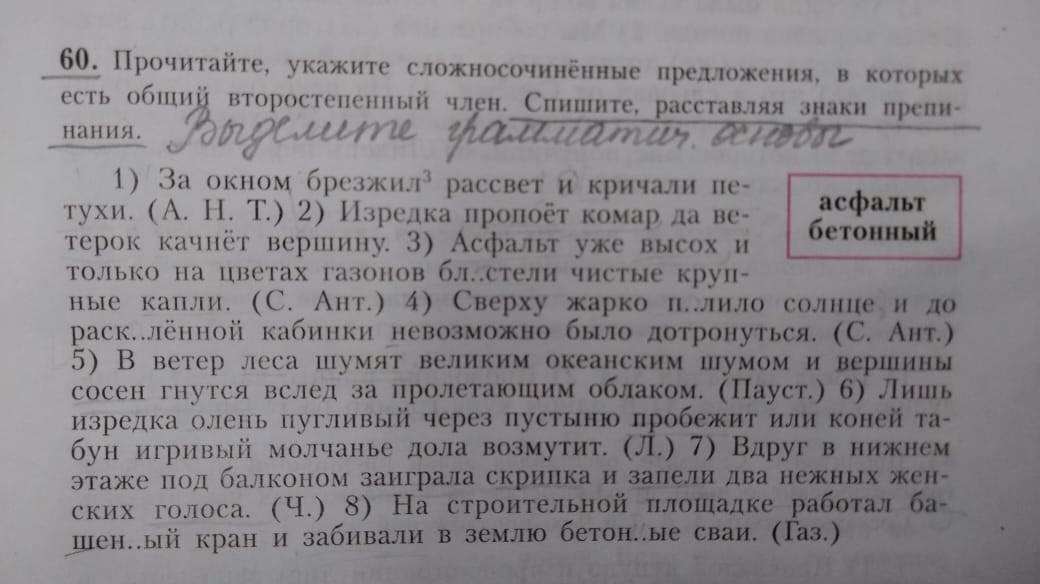 Брезжил рассвет, кричали петухи, пропоёт камар, асфальт высох, блестели капли, палило солнце, невозможно было дотронуться, леса шумят, вершины гнутся, олень пробежит, табун возмутит, заиграла скрипка, запели два голоса, работал кран, забивали сваи